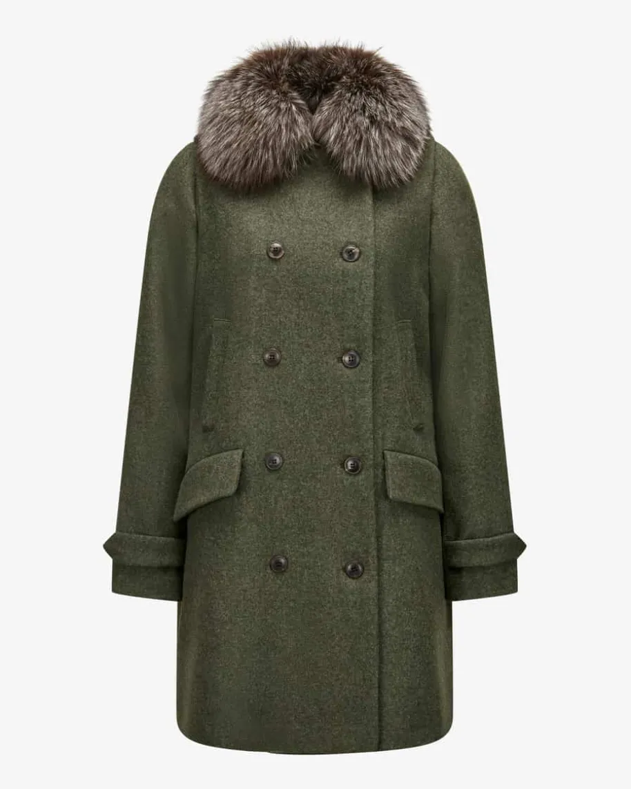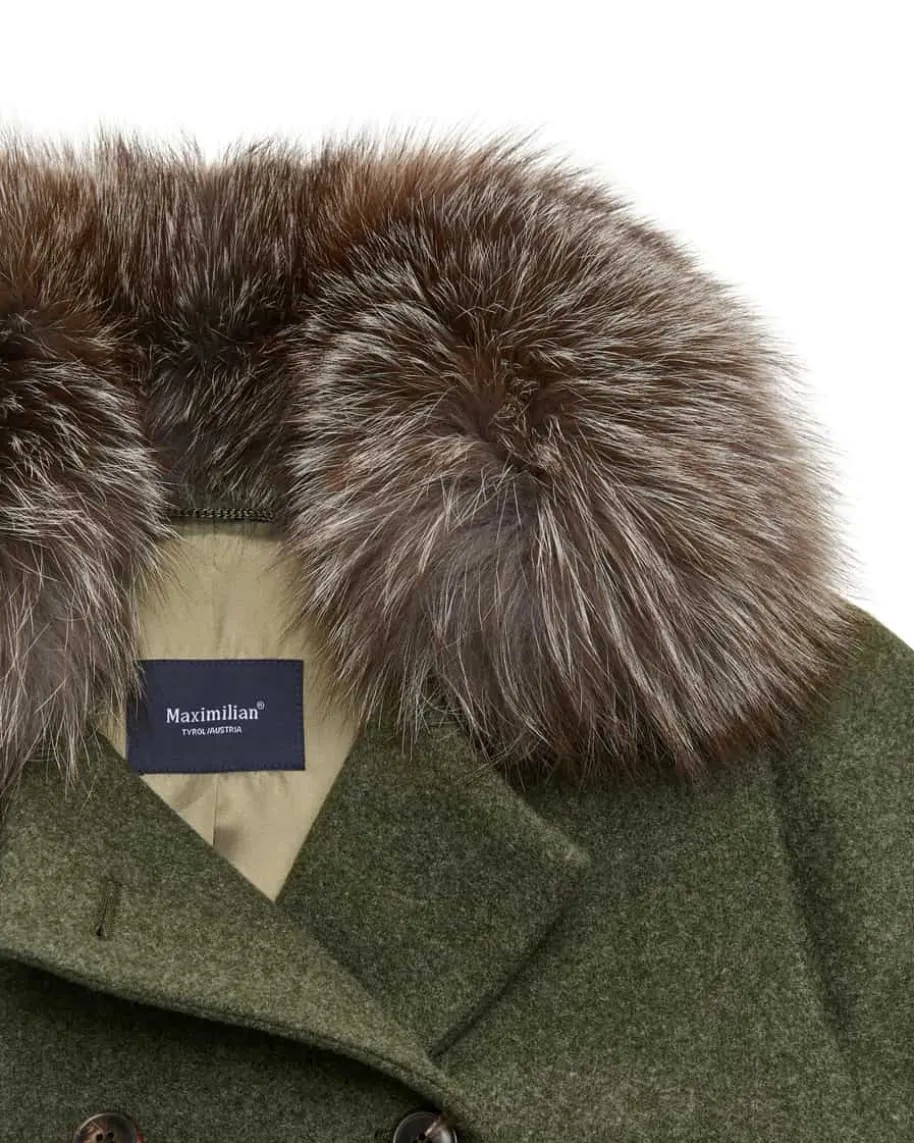 Johanna Trachten-Lodenmantel für Damen von Maximilian in Moosgrün. Das Modellbegeistert mit hochwertigem Loden mit weicher Haptik, der für angenehmenTragekomfort sorgt. Der kuschelige Fellkragen rundet den zweireihigenTrachtenbegleiter gekonnt ab.