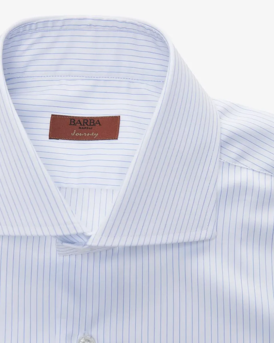 Journey Businesshemd für Herren von Barba in Weiß und Blau.Mit tailliertem Schnittund klassischen Details überzeugt das Modell als stilvollesEssential fürelegante Business-Looks, während die leichte Baumwoll-Qualität angenehmeTragemomenten beschert. Das Hemd aus der Journey Linebegeistert zudem mitpraktischer knitterfreier sowie atmungsaktiver Eigenschaftund eignet sich soperfekt für Geschäftsreisen.