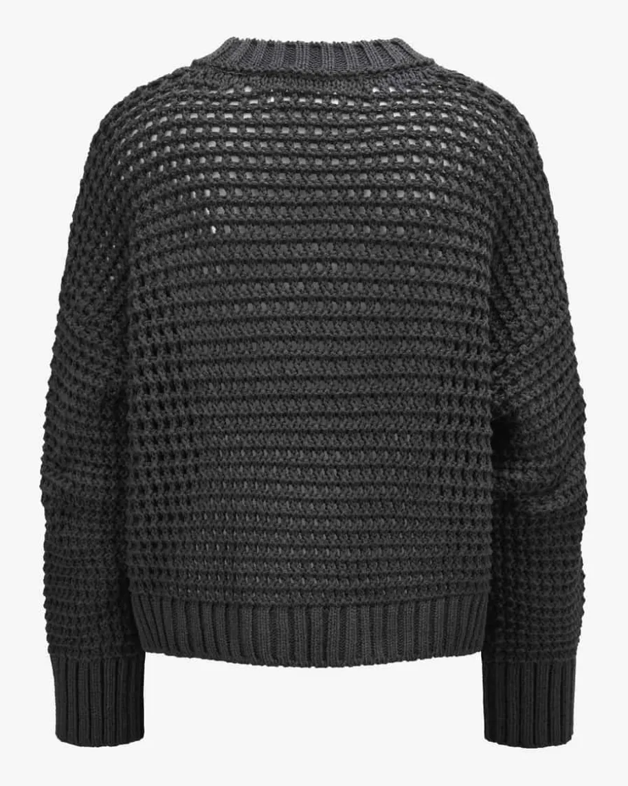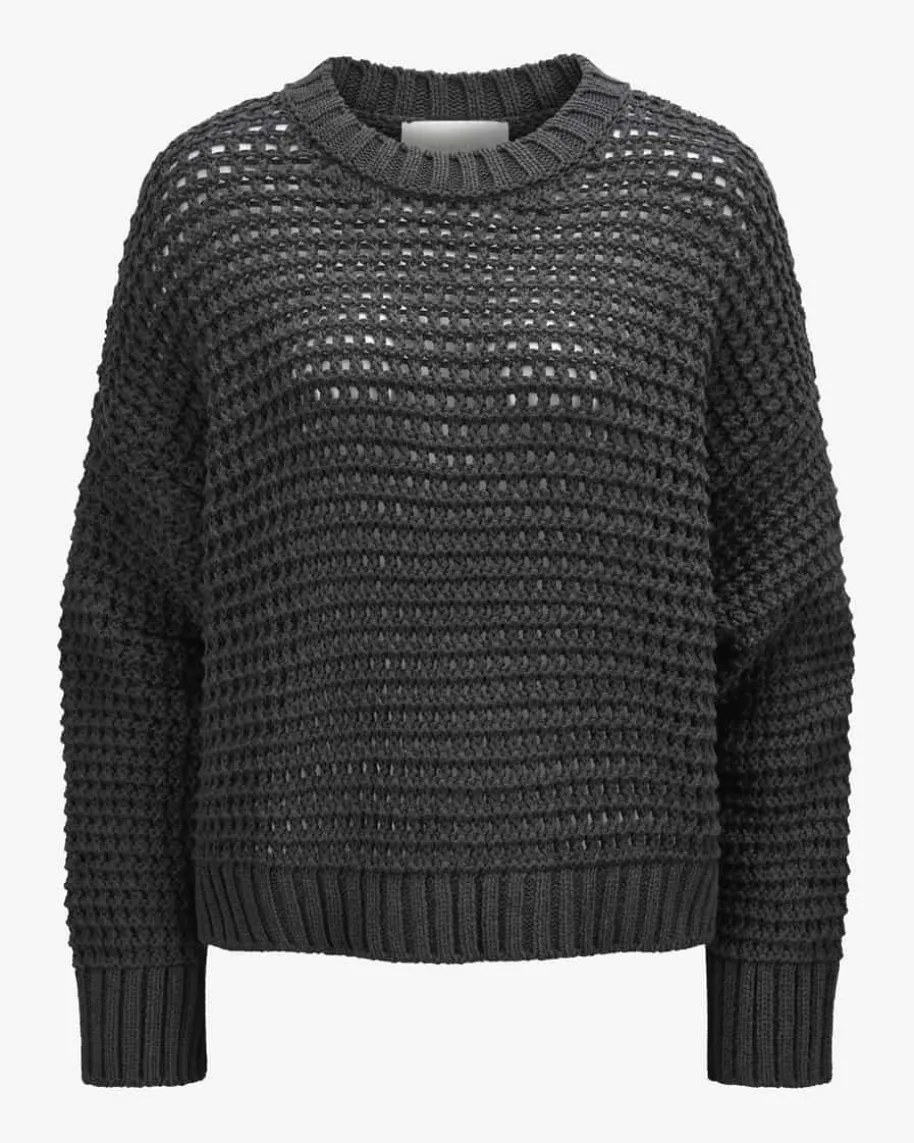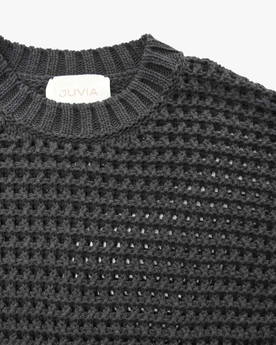 Kalani Pullover für Damen von Juvia in Anthrazit. Styles mit Wohlfühlcharakter –Das verspricht das Label Juvia. Das Modell begeistert mit grobem,semitransparentem Lochstrickmuster, während die Oversize-Passform einen legerenCharakter verleiht und somit zu einem optimalen Layering-Piece avanciert.