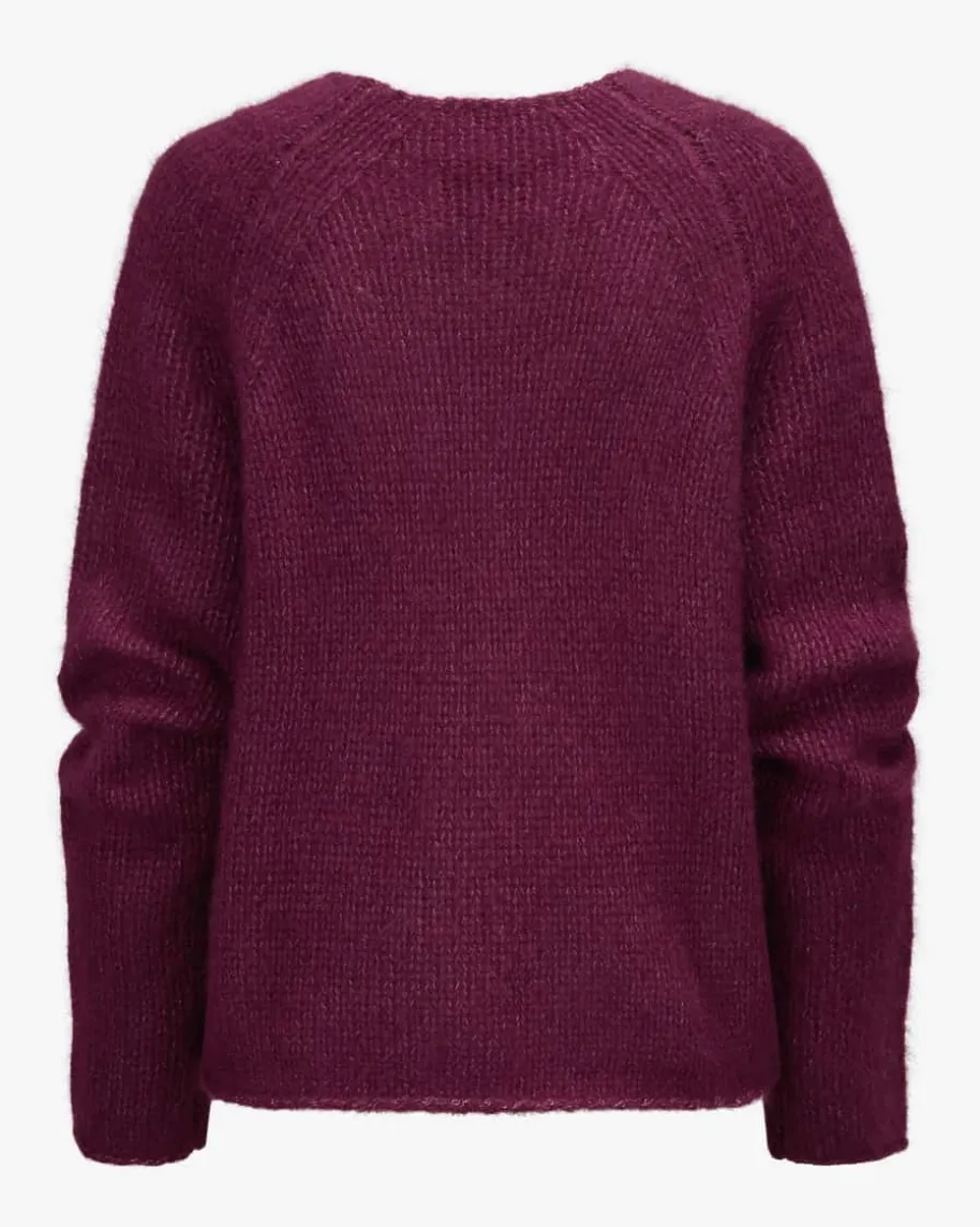 Kari Nos Cashmere-Seiden-Pullover für Damen von Lu Ren in Burgundy. DiesesModell präsentiert sich in weicher Cashmere-Seiden-Qualität, während dasschlichte Dessin einen zeitlosen Strick-Begleiter kreiert.