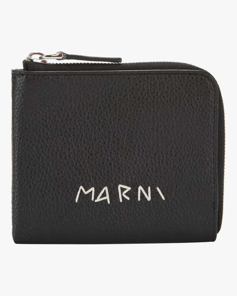 Kartenetui für Herren von Marni in Schwarz. Dank des genarbten Leders sowie demgestickten Logo überzeugt das Modell durch schlichte Eleganz, während mehrereFächer ausreichend Platz bieten und das Etui so zu einem praktischen Begleitermachen.