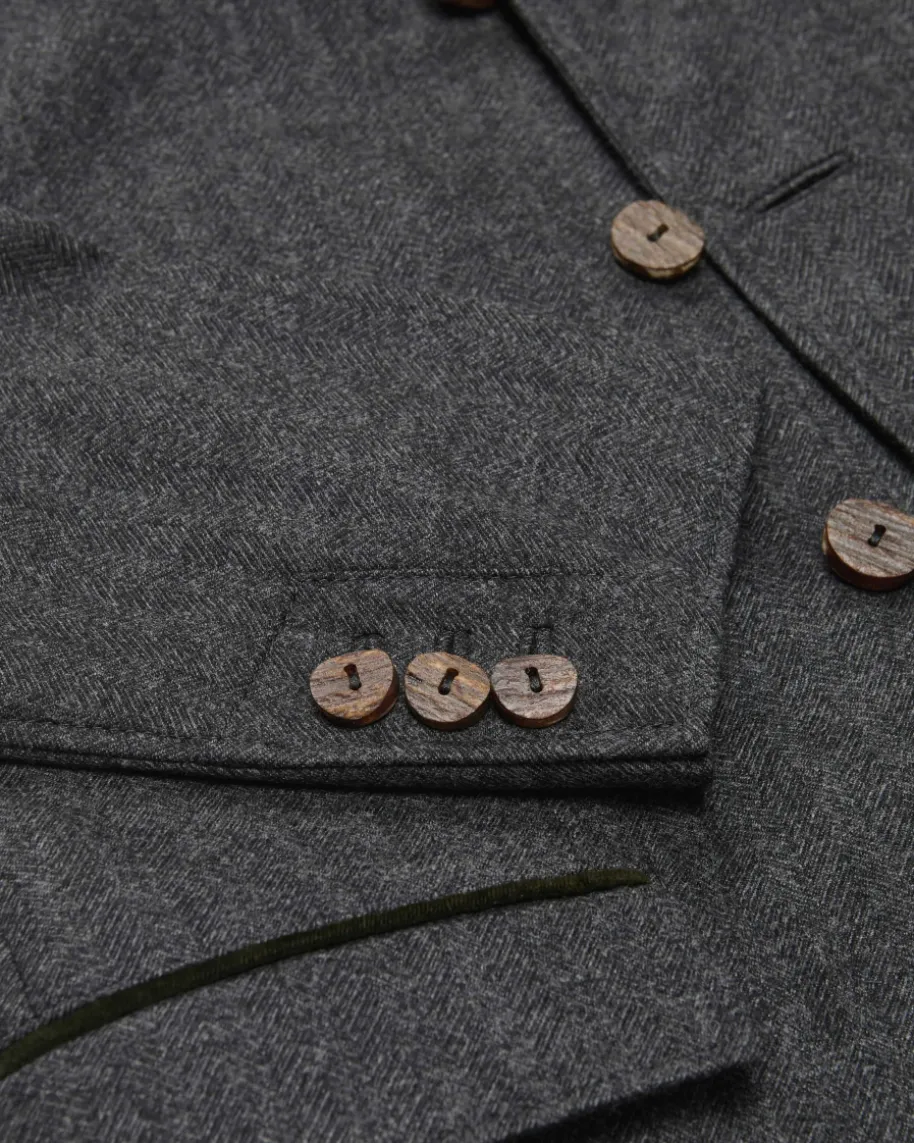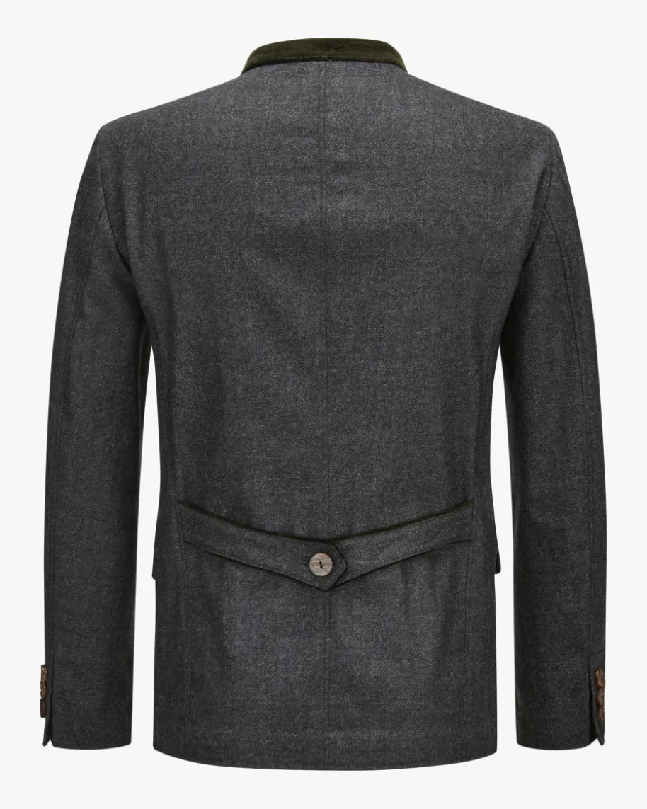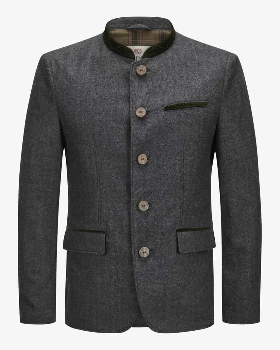 Karwendel Trachten-Janker für Herren von Meindl in Graphit und Dunkelgrün. Dasbayrische Traditionsunternehmen Meindl steht seit der Gründung 1928 füraufwendige Handarbeit und höchste Qualitätsstandards. Auch dieses Modellüberzeugt durch den weichen Schurwoll-Cashmere-Mix, während Hornknöpfe undweiche Samt-Paspelierungen das Gesamtbild traditionell ergänzen.