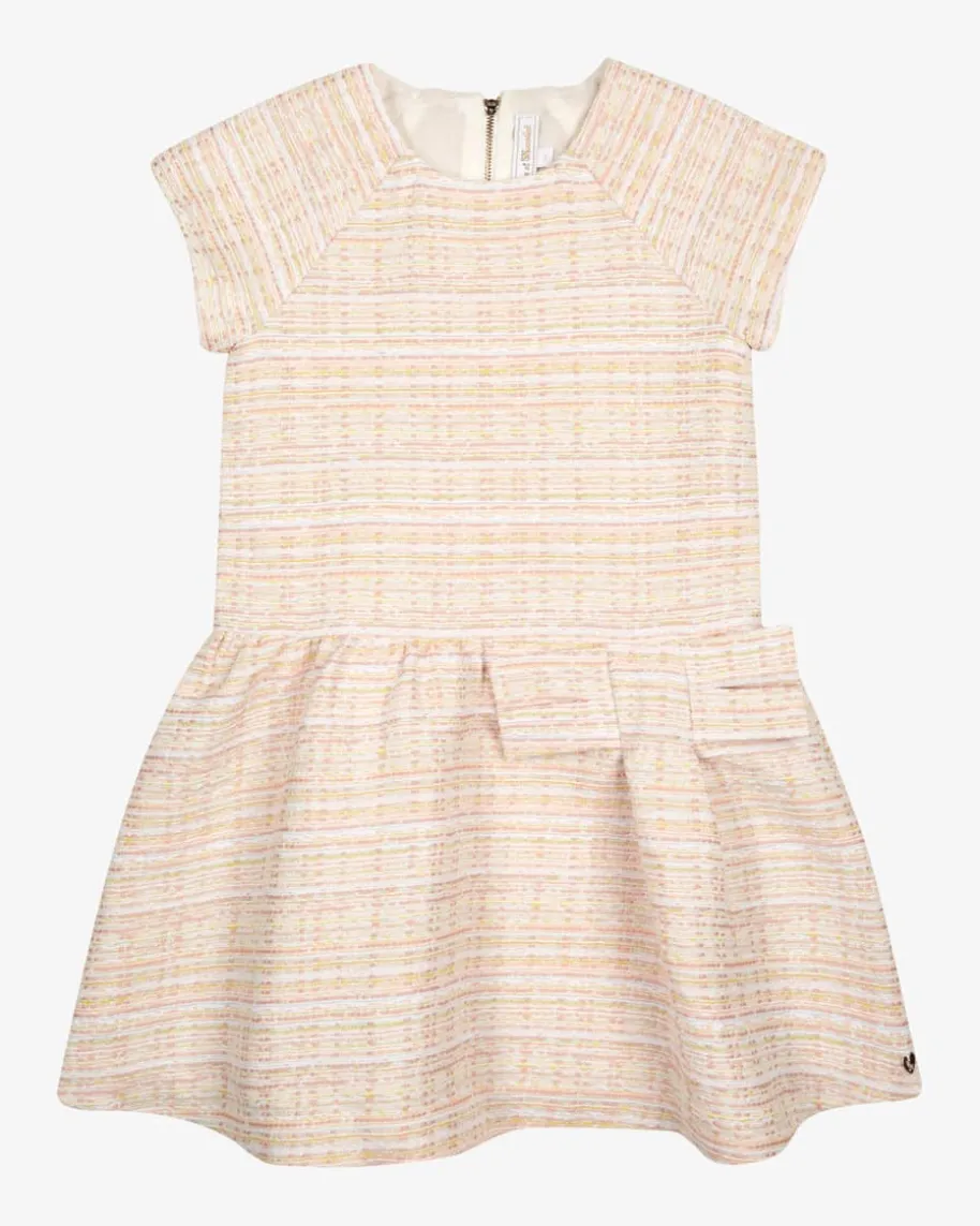 Kleid für Mädchen von Tartine et Chocolat in Rosa und Bunt. Dieses Modellverzaubert mit feiner Tweed-Aufmachung, die für einen eleganten Look sorgt. Derausgestellte Rock schafft eine festliche Silhouette und verleiht dem Designzusammen mit der Schleifen-Applikation das gewisse Etwas.
