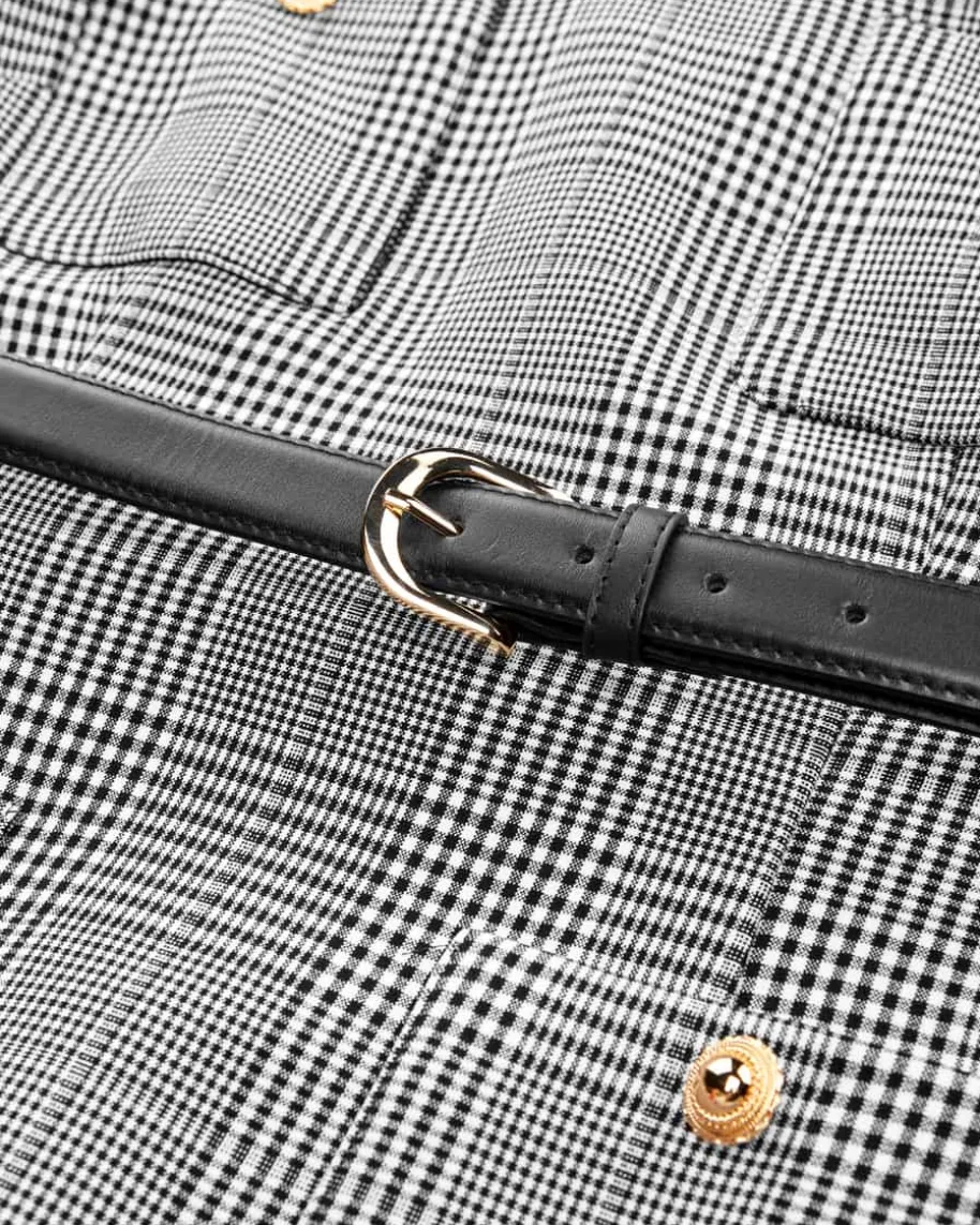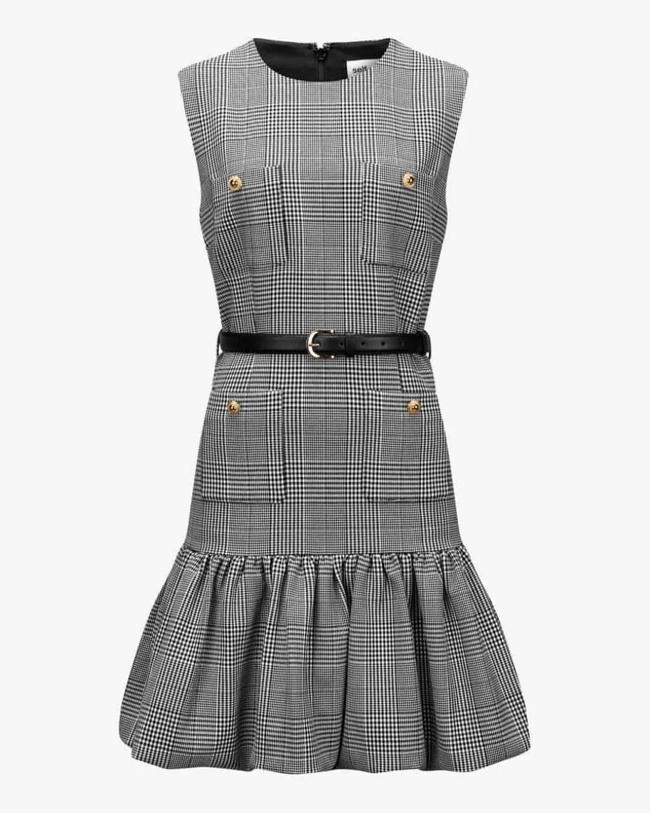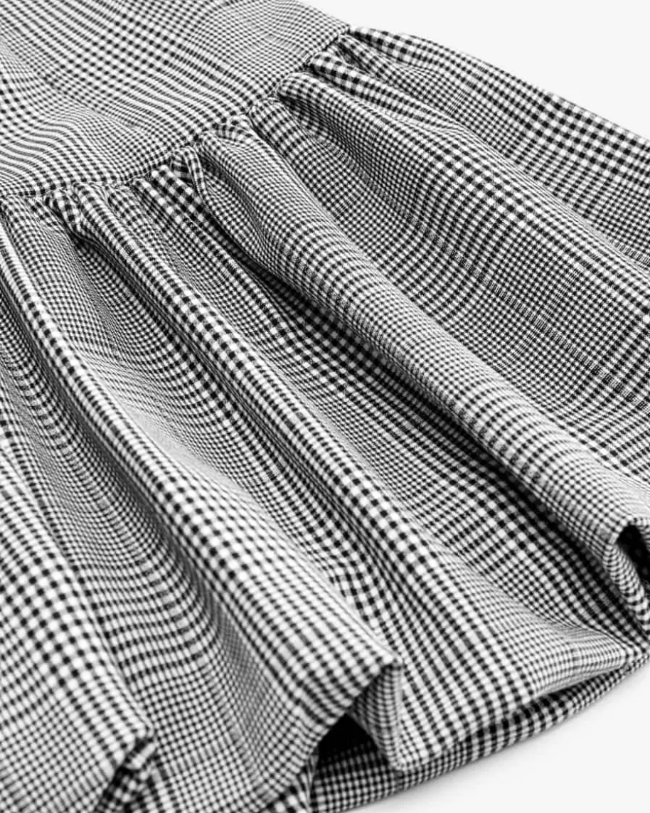 Kleid für Damen von Self-Portrait in Schwarz und Weiß. Das schmale Modellbegeistert mit feinem Karomuster und markantem Ballonrock, der für das gewisseEtwas sorgt. Die goldfarbenen Knöpfe verleihen dem Tailored Chic Look zudemeinen eleganten Charakter.