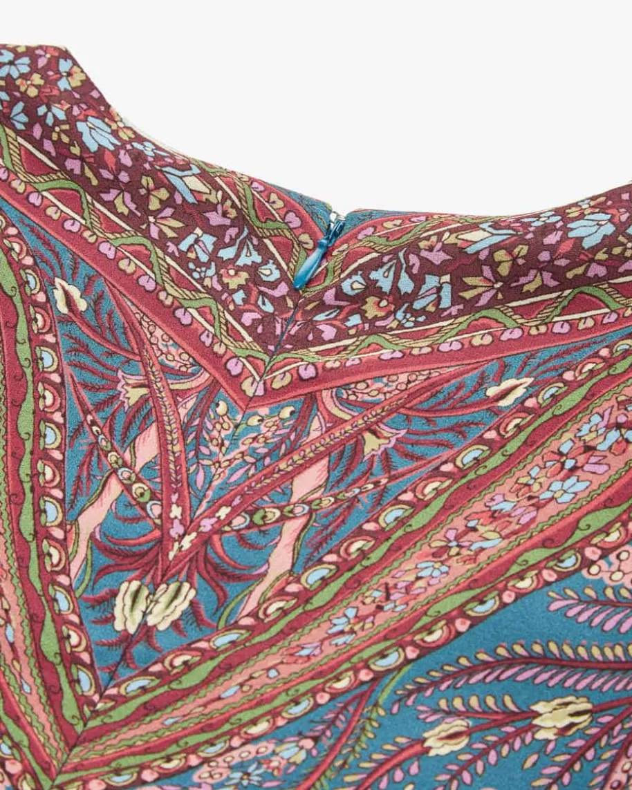 Kleid für Damen von Etro in Türkis, Dunkelrot und Grün. Das Modell präsentiertsich in fließender Material-Qualität, die sowohl haptisch als auch optischüberzeugt. Zudem betont die drapierten Raffungen an der Taille die feminine Notegekonnt und kreiert zusammen mit dem floralen Muster einen stilvollen Look mitlabeltypischem Touch.
