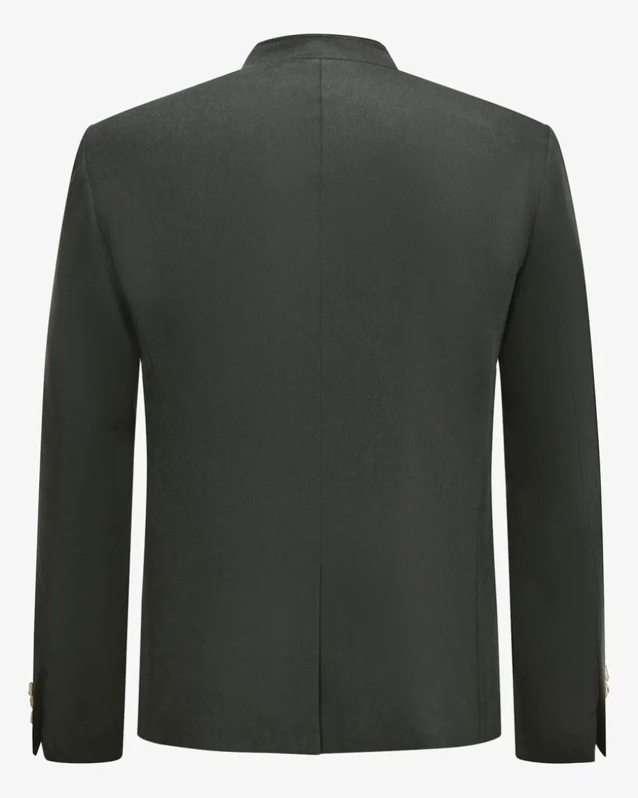 Kornegg Doppelreiher-Trachtenjanker für Herren von Habsburg in Dunkelgrün. DasModell aus hochwertiger Schurwolle präsentiert sich in traditionellerAufmachung, welche dank der rustikalen Hornknöpfe gekonnt untermalt wird.Zugleich vollenden die Wappen-Stickerei sowie weiche Samt-Paspelierungen denTrachten-Look harmonisch.