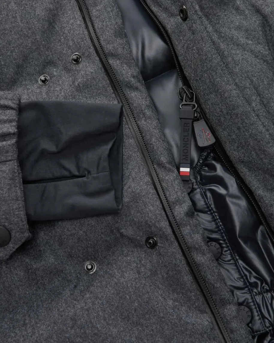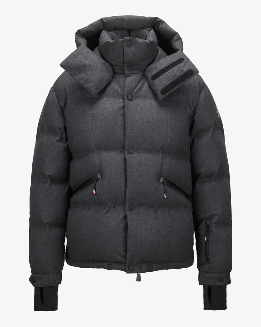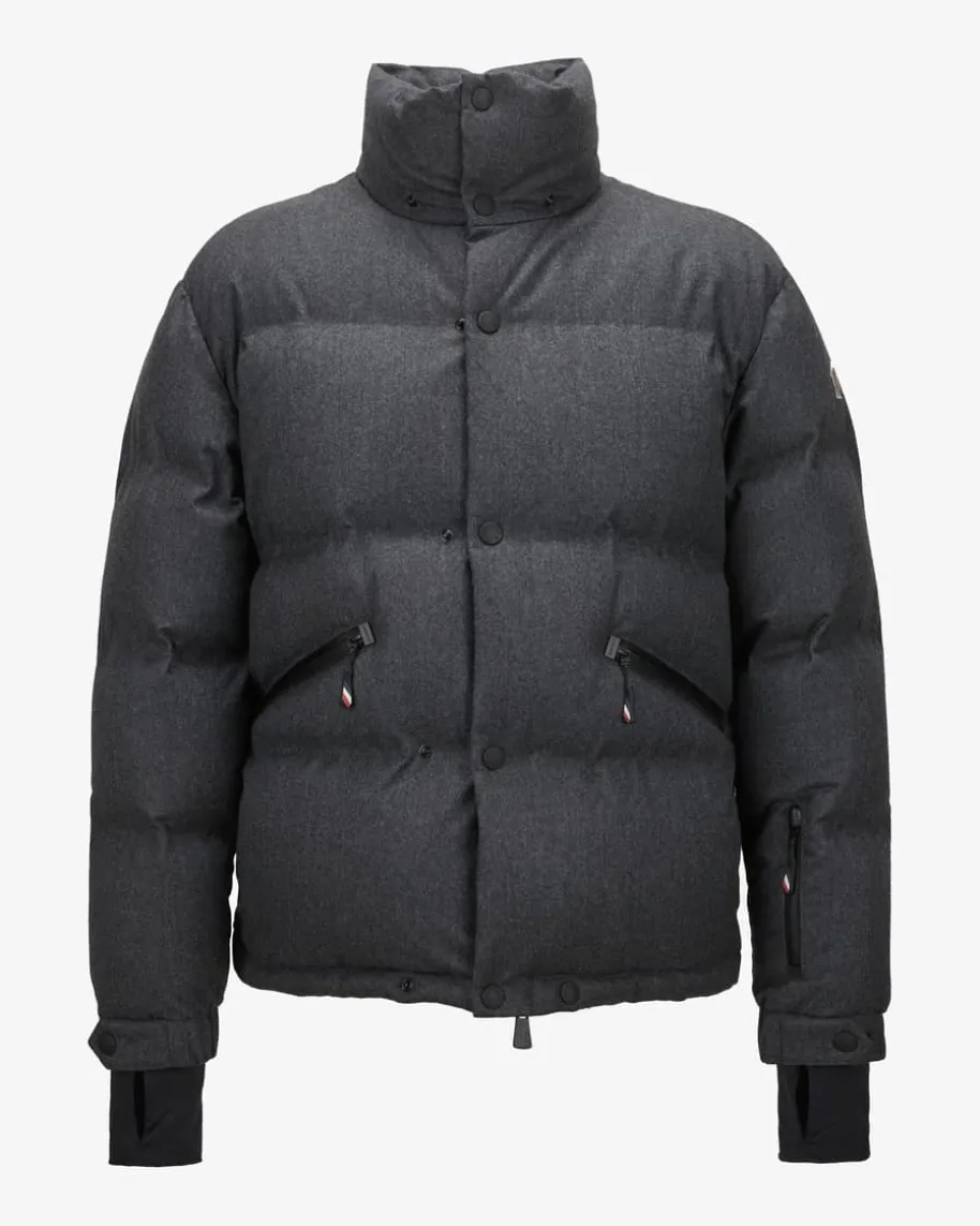 Krun Daunenjacke für Herren von Moncler Grenoble in Dunkelgrau. Das Modellpunktetmit hochwertiger melierter Schurwolle, die für angenehmen Tragekomfort sorgt.Das Steppfutter mit voluminöser Daunen-Feder-Füllung sorgt zudem für wärmendenKomfort. Zahlreiche sportive Details und die wasserabweisende Ausrüstung rundenden Look aus der Performance & Style Kollektion gekonnt ab.
