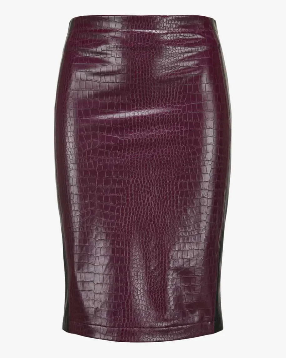 Kunstleder-Rock für Damen von Sportalm in Aubergine. Dank dem Mix aus glattemKunstleder und Krokodilleder-Imitat besticht das Modell in modischer Aufmachung,während die schmale Passform einen femininen Favoriten mit Sinn für Stilkreiert.