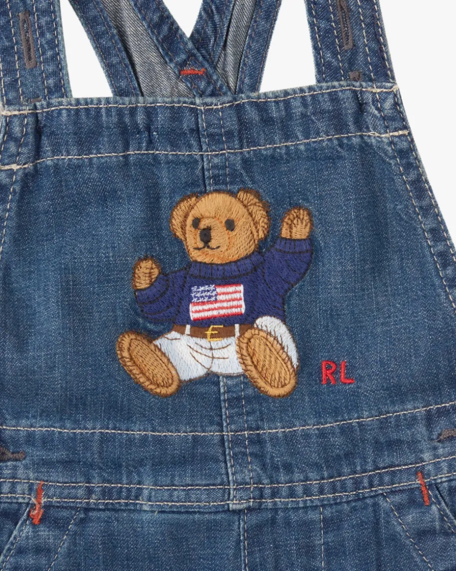 Latzhose für Babys von Polo Ralph Lauren in Dunkelblau. Das zeitlose Denim-Design, klassische Details und die labeltypische Bären-Stickerei schaffen einenniedlichen Favoriten mit dezenter Waschung und zuckersüßer Latzhosen-Aufmachung.