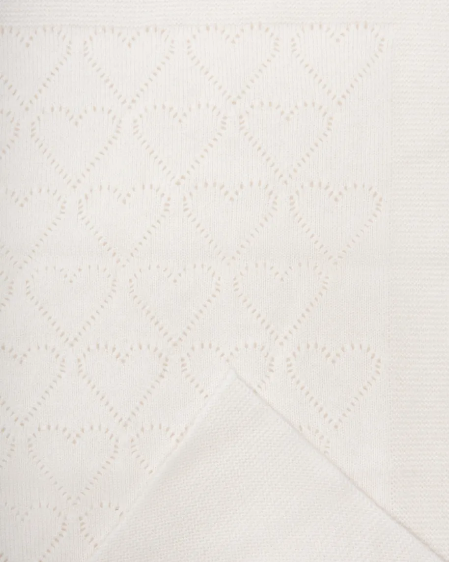 Lea Cashmere-Decke für Babys von Papa Lobster in Creme. Der perfekte täglicheBegleiter für Ihre Kleinen – Dieses vielseitig einsetzbare Modell überzeugt dankbesonders weicher Cashmere-Qualität in stilvollem Strick-Design, das durchniedliche Lochstickereien in Herz-Form ergänzt wird.