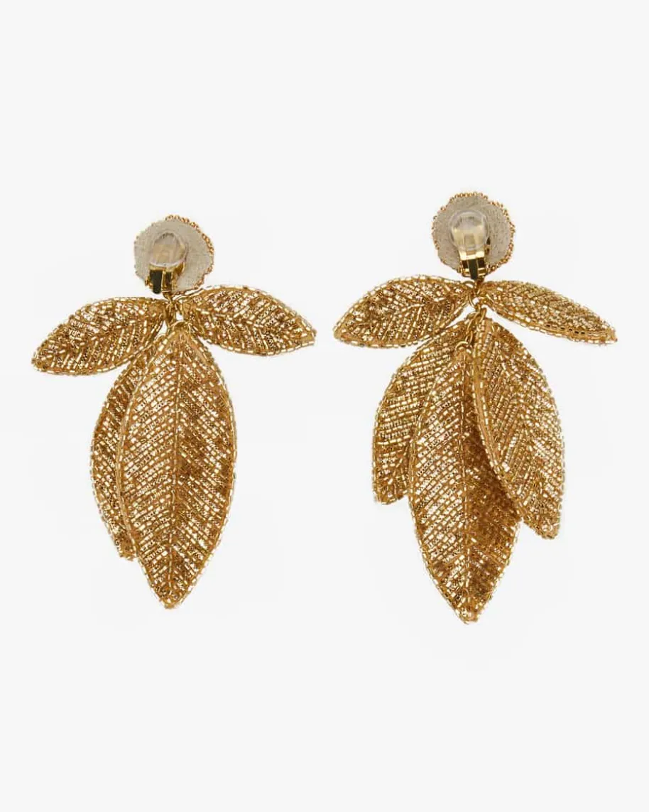 Leaf Clip-Ohrringe von Olivia Dar in Gold. Dieses extravagante Schmuckstückavanciert dank changierender Schmuckperlen-Applikationen zu einem besonderenEyecatcher, der jedem Outfit einen Hauch Raffinesse verleiht.