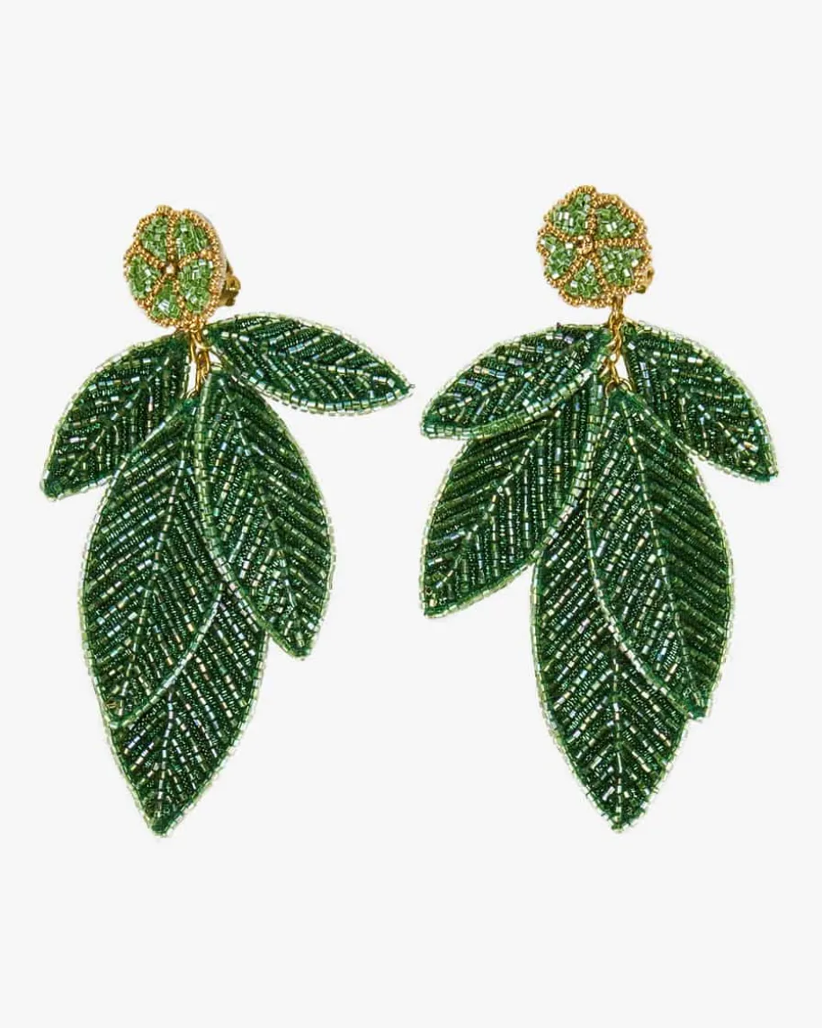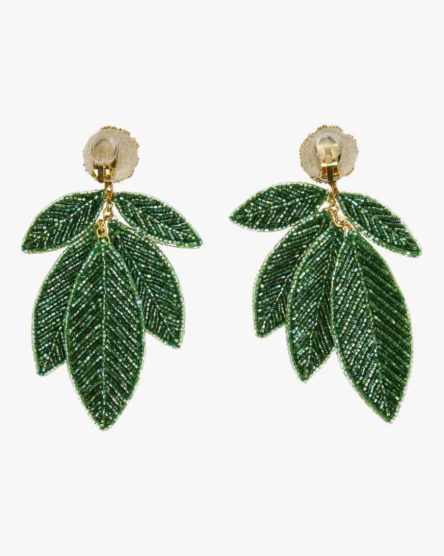 Leaf Clip-Ohrringe von Olivia Dar in Flaschengrün und Gold. Dieses extravaganteSchmuckstück avanciert dank changierender Schmuckperlen-Applikationen zu einembesonderen Eyecatcher, der jedem Outfit einen Hauch Raffinesse verleiht.