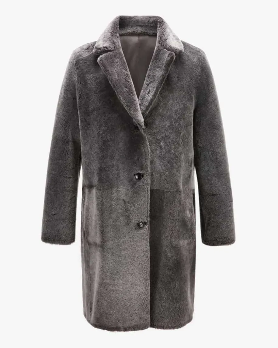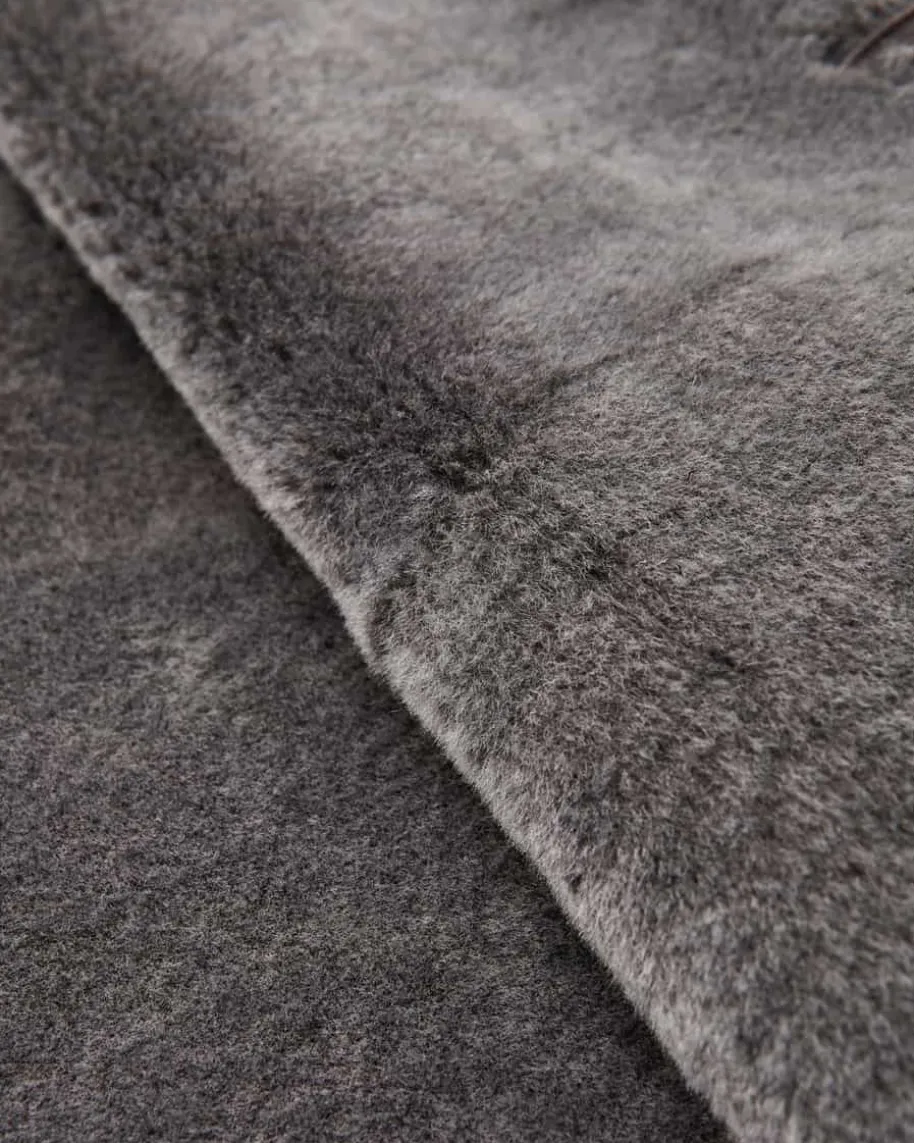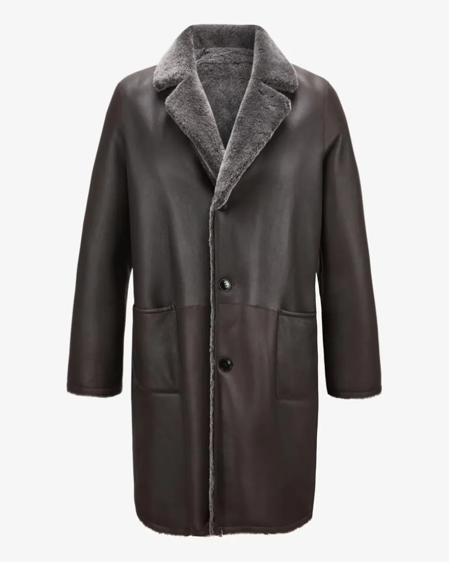 Leder-Wendemantel für Herren von Manzoni 24 in Blaugrau. Das kuschelige Modellaus hochwertigem Lammfell zeichnet sich durch die Wende-Funktion aus, die jenach gewünschtem Look einen Glattledermantel mit klassischen Details oder einenchangierenden Fellmantel mit modischen Reißverschlusstaschen zaubert.
