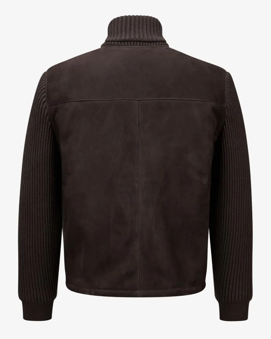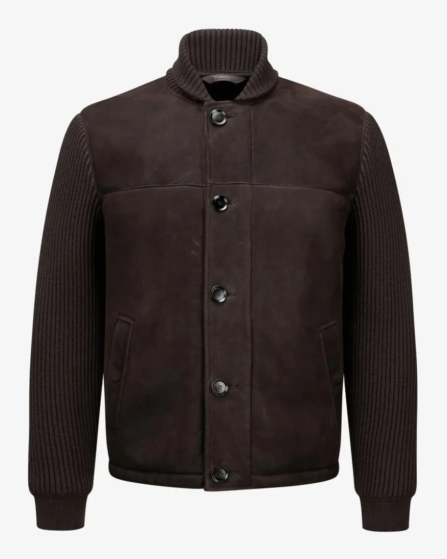 Lederblouson für Herren von Brioni in Dunkelbraun. Dieses Hybrid-Modell punktetmit hochwertiger Veloursleder-Qualität in Kombination mit Strickeinsätzen underhält so einen besonderen Charakter, während die Blouson-Aufmachung ein legeresGesamtbild kreiert. Zugleich schützt Sie die Fake Fur-Innenseite zusammen mitden gefütterten Ärmeln optimal vor Kälte.