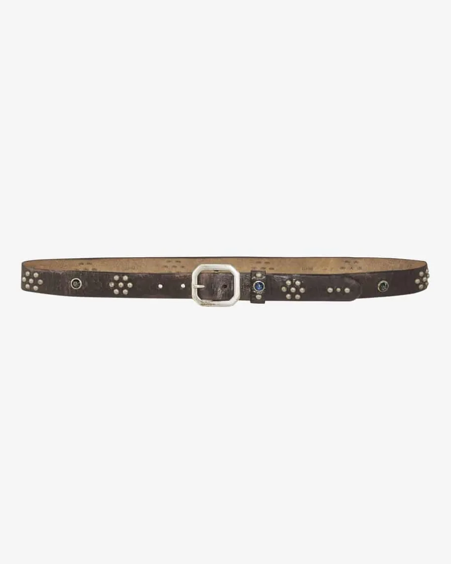 Ledergürtel für Herren von RRL in Dunkelbraun. Das Modell überzeugt mithochwertiger und fein geprägter Leder-Qualität sowie stilvollem Nieten-Besatz.