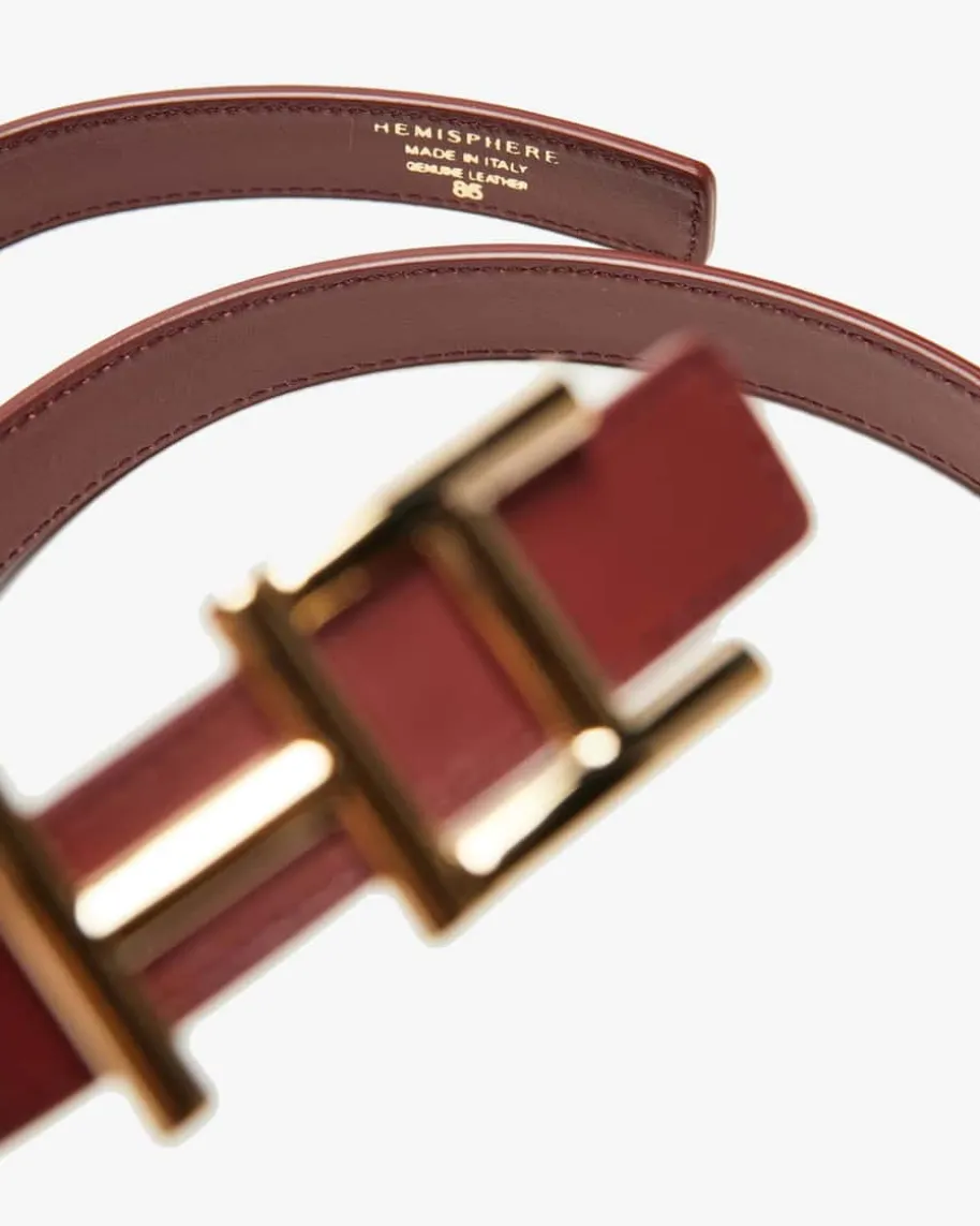 Ledergürtel für Damen von Hemisphere in Bordeaux. Das Modell aus hochwertigemGlattleder präsentiert sich in femininer Aufmachung, während die schimmerndeSchließe das Gesamtbild stilvoll aufwertet.