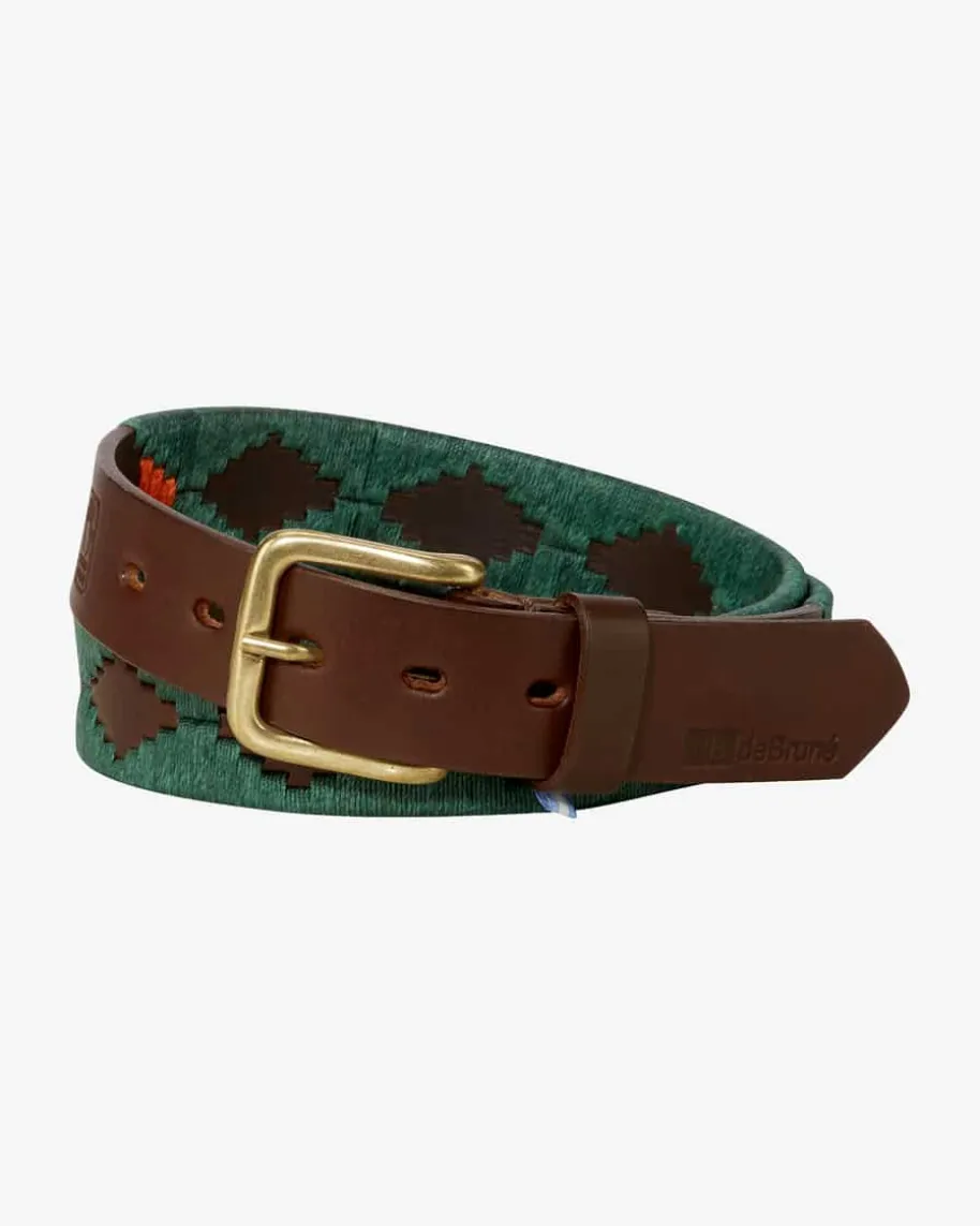 Ledergürtel für Herren von de Bruné in Dunkelbraun, Dunkelgrün und Orange. Madein Argentina – Das Unternehmen stellt Produkte nach traditionellen Methoden herund verwendet stets ausgelesene Materialien. Der handgemachte Gürtel ausrobustem Leder schafft dank raffinierten Stickereien einen rustikalen Blickfang.