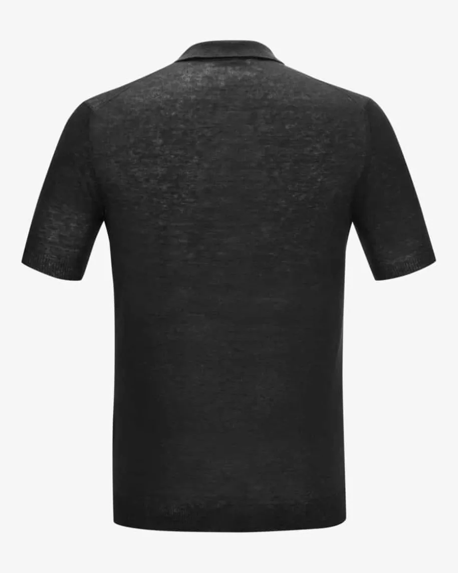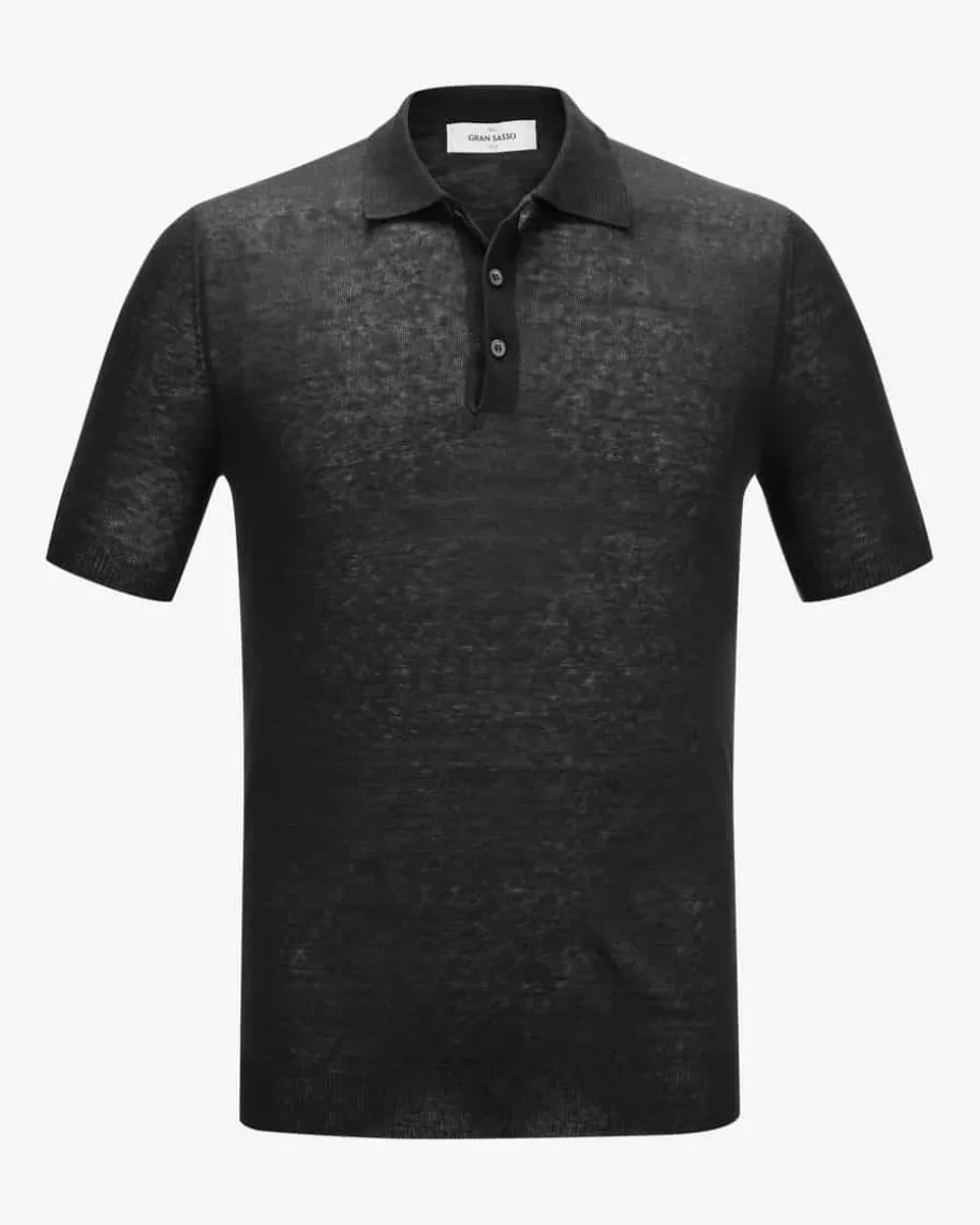 Leinen-Poloshirt für Herren von Gran Sasso MGS in Schwarz. Die Verwendung derfeinen Strick-Qualität sorgt für eine angenehme Haptik, während die Polo-Elemente einen sportiven Touch verleihen.