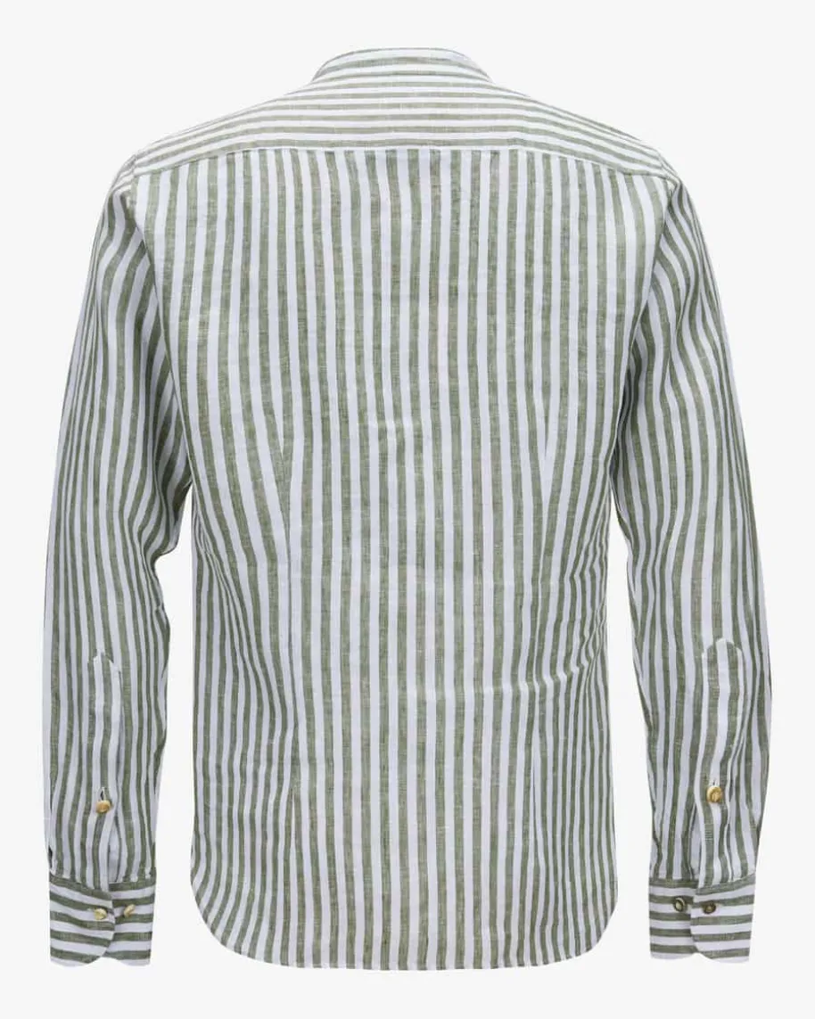 Leinen-Trachtenhemd für Herren von DU4 in Oliv und Weiß. Das luftige Modellbegeistert mit angenehmer Leinen-Qualität, modischem Streifen-Dessin undklassischen Details. Ein vielseitiger Begleiter für verschiedenste Anlässe.