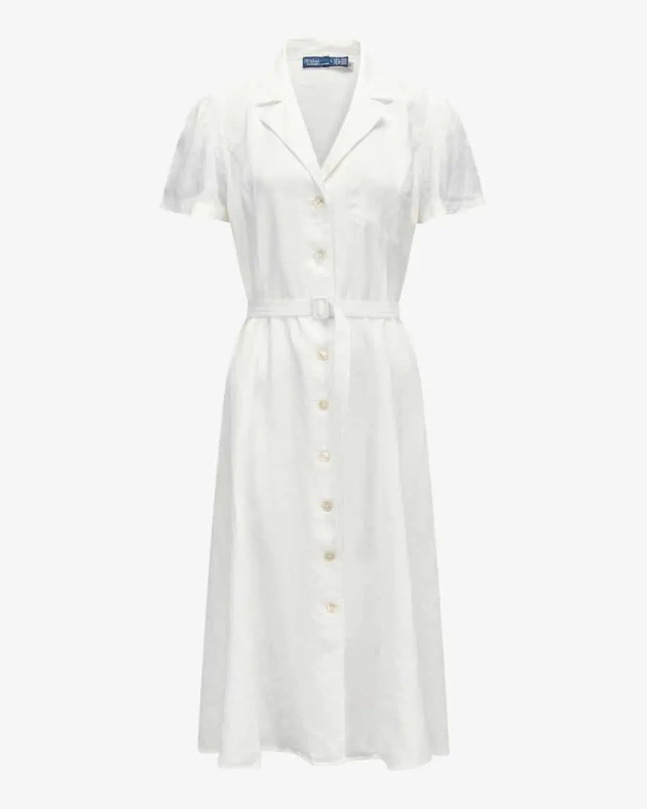 Leinenkleid für Damen von Polo Ralph Lauren in Weiß. Das Modell besticht dankder angenehmen Leinen-Qualität mit kühlenden Eigenschaften für den Sommer,während die klassische Schnittführung einen modisch-legeren Begleiter schafft.