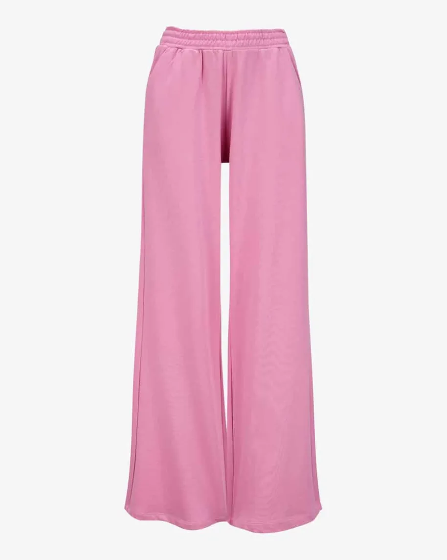 Lely Sweathose für Damen von Love Joy Victory in Rosa. Das Modell aus angenehmerBio-Baumwolle präsentiert sich in legerer Sweat-Aufmachung, während dasausgestellte Bein dem sonst sportivem Lounge-Look ein modernes Update verleiht.Zugleich verleiht die angeraute Innenseite ein angenehmes Tragegefühl.