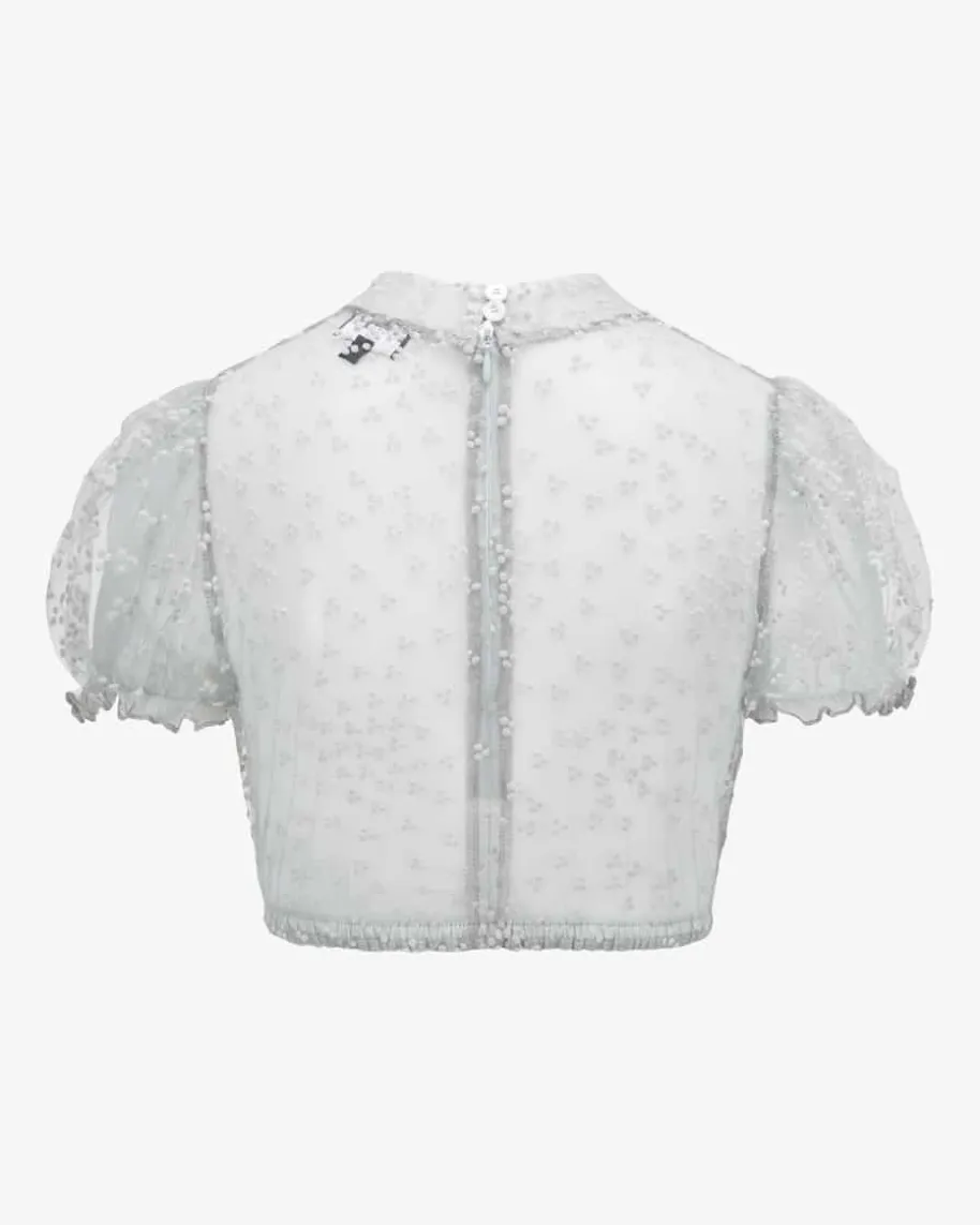 Leni Dirndlbluse Transparent für Damen von Kinga Mathe inGrau. Dashochgeschlossene Modell mit Puffärmeln zeichnet sich durchdie semi-transparenteTüll-Qualität aus, welche dank feinem Punktemuster stilvollergänzt wird – Einromantischer Begleiter für Ihren Trachten-Look.