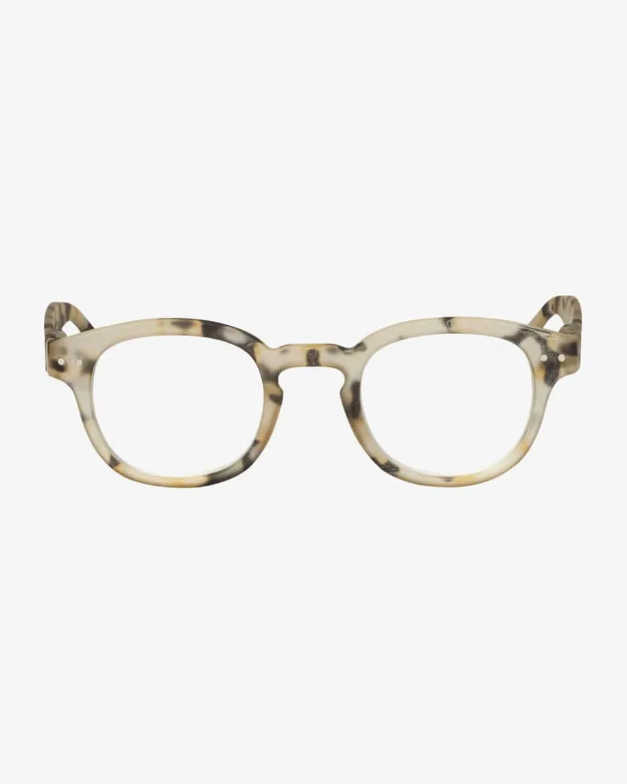 Lesebrille von Izipizi in Beige und Braun. Fashionable Reading – FlexibleBügel, besonders leichtes Gewicht und eine angesagte runde Rahmen-Form mitmodischer Farbe machen die Lesebrille zu einem funktionellen und zugleichstilvollen Accessoire. Eine im Lieferumfang enthaltene Filz-Hülle mit Logo-Schriftzug schützt die Brille der Collection #C.