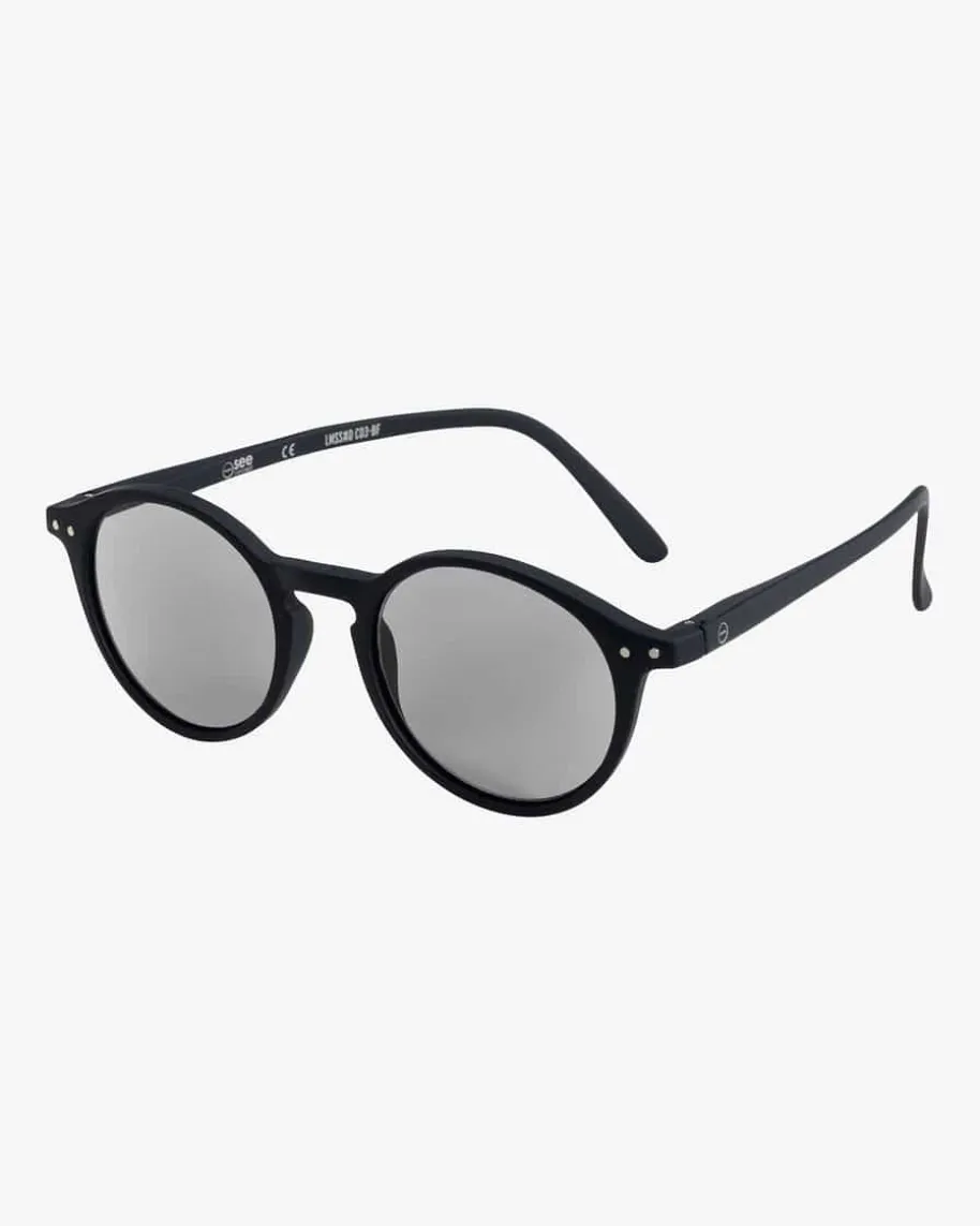 Lesebrille mit verdunkelten Gläsern von Izipizi in Schwarz. Fashionable Reading – Flexible Bügel, besonders leichtes Gewicht und eine angesagte runde Rahmen-Form mit modischer Farbe machen die Lesebrille zu einem funktionell und zugleich stilvollen Accessoire. Eine im Lieferumfang enthaltene Filz-Hülle mit Logo-Schriftzug schützt die Brille der Collection #D. Als besonderes Detail verdunkeln sich die Gläser bei Sonnenlicht, wodurch die Brille nicht nur zum Lesen sondern auch als Sonnenschutz geeignet ist.
