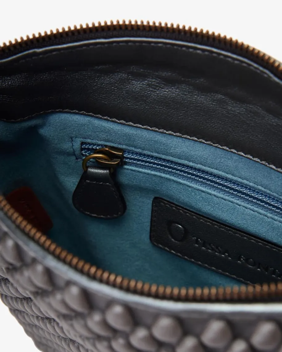 Liberty Umhängetasche für Damen von Tissa Fontaneda in Anthrazit. Das 2010gegründete Label vereint Handwerkliches Können und Liebe zum Detail. Die soforterkennbare „Bubble Bag“ ist zum Markenzeichen der Kollektion Tissa Fontanedageworden. Auch dieses Modell begeistert in charakteristischer Aufmachung mitstrukturierter Optik, während der breite Schulterriemen sportive Akzente setzt.