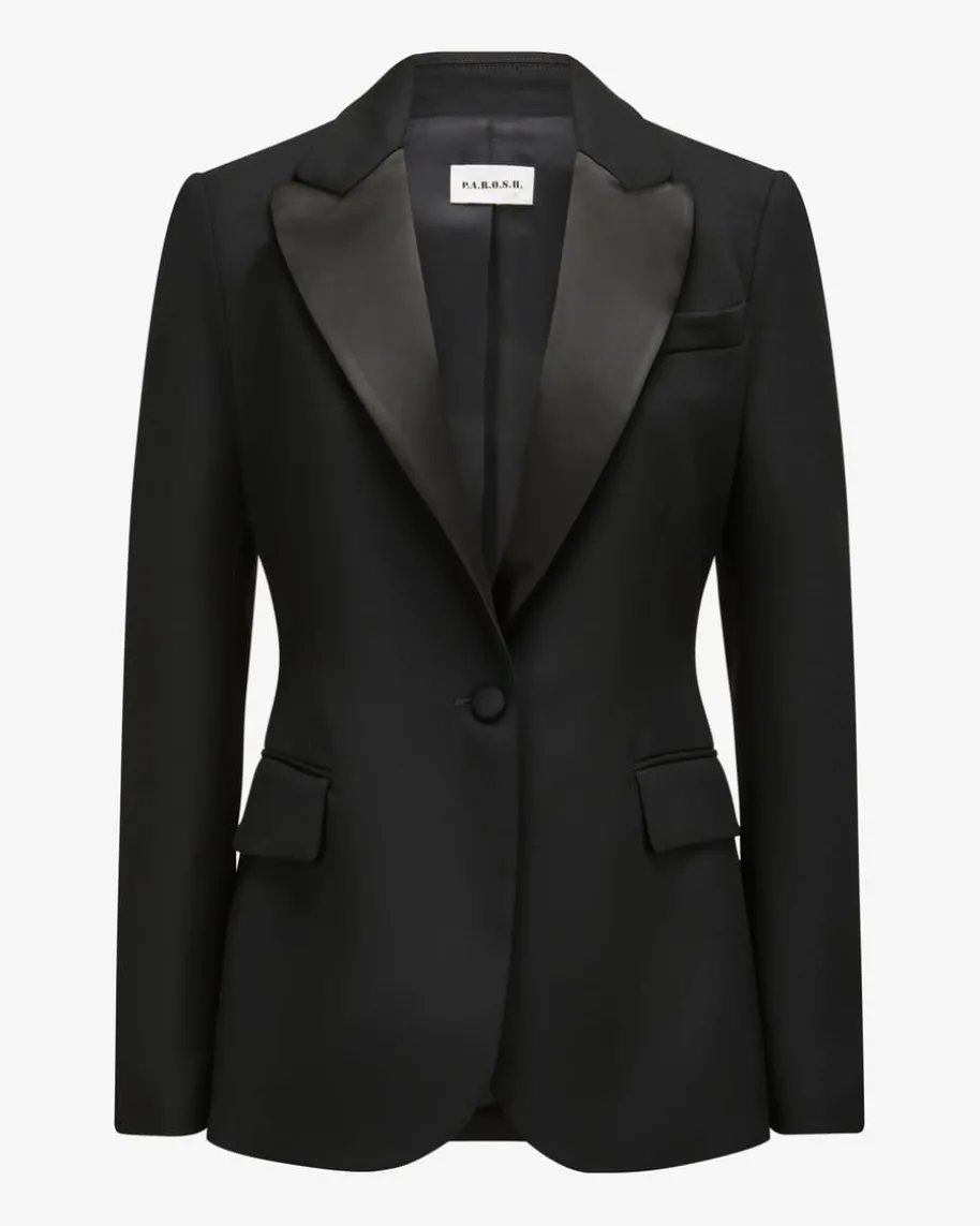 Liliuxy25 Blazer für Damen von Parosh in Schwarz. Die Marke steht für verspielteDesigns mit Vintage-Flair – farbenfrohe Prints, Glitzer und Retro-Vibes made inItaly. Das Modell in taillierter Passform und angenehmer Haptik aus hochwertigemSchurwoll-Mix, überzeugt in femininer Aufmachung dank des changierendenReverskragens und avanciert so zu einem idealen Begleiter für edle Looks.