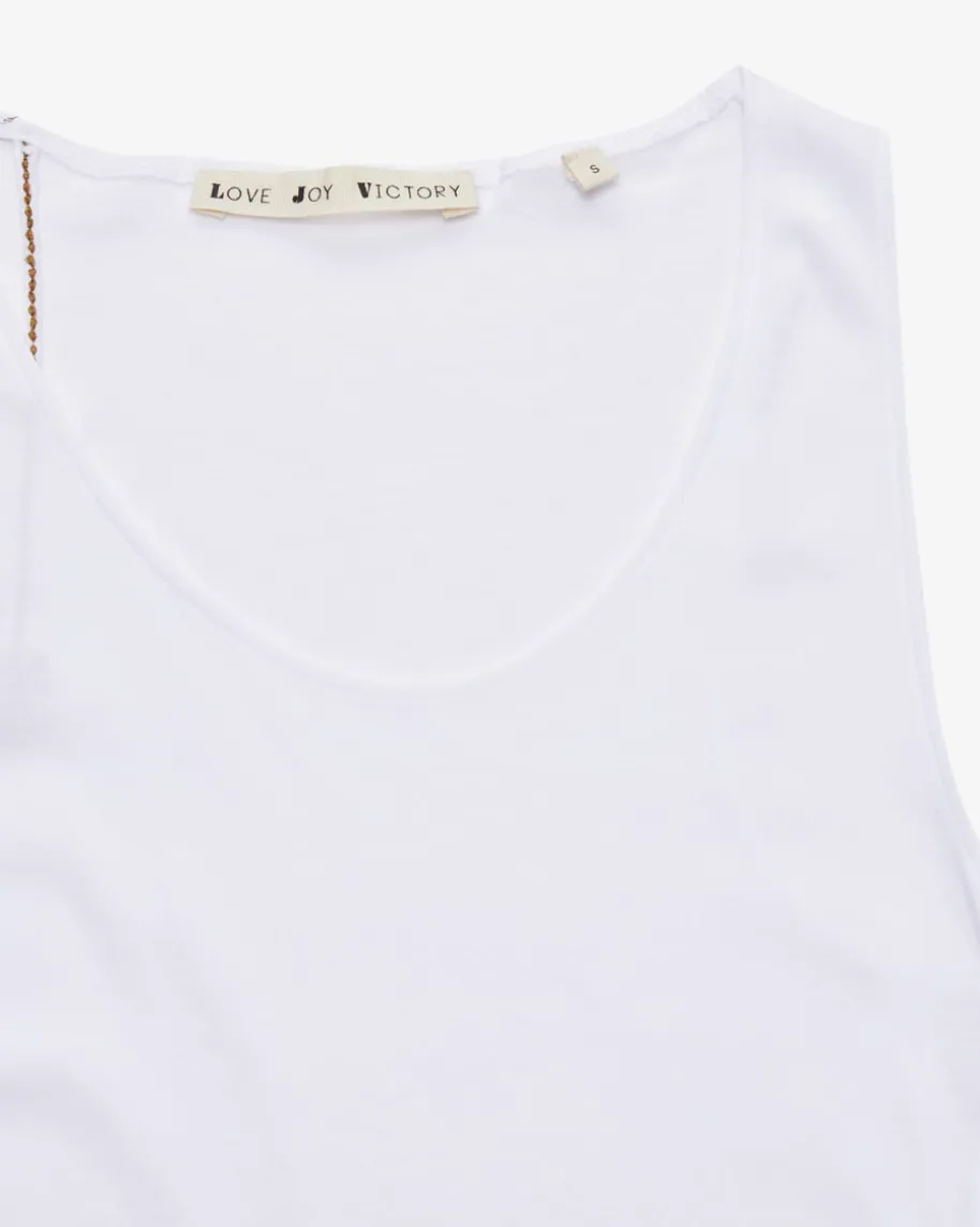 Lina Top für Damen von Love Joy Victory in Weiß. Das Modell punktet dank derhochwertigen Bio-Baumwolle mit einer angenehmen Haptik, während das schlichteDesign durch akzentuierende Logo-Details abgerundet wird.