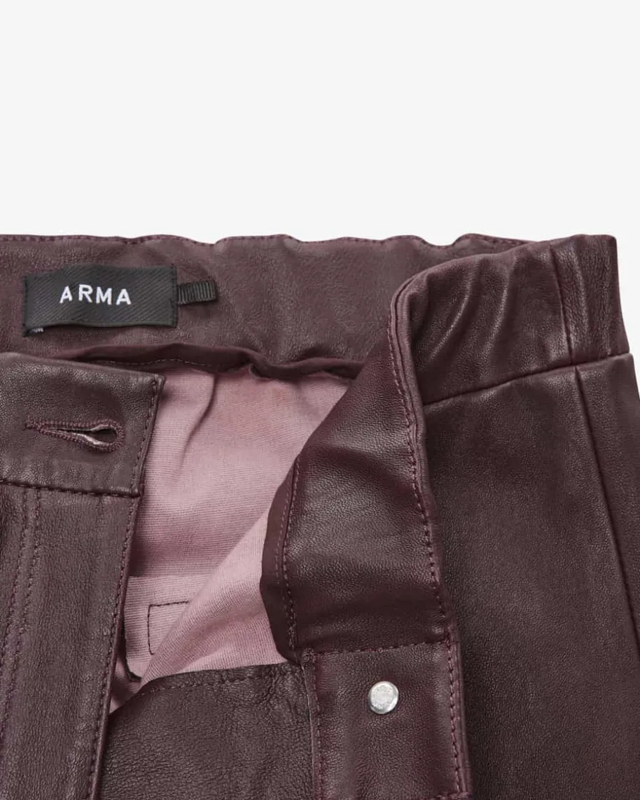 Lively 7/8-Lederhose für Damen von ARMA in Bordeaux. Perfektionieren Sie IhreFreizeit-Garderobe mit diesem vielseitig kombinierbaren Piece. Der elastischeBund und der Flared-Schnitt sorgen für eine feminine Silhouette.