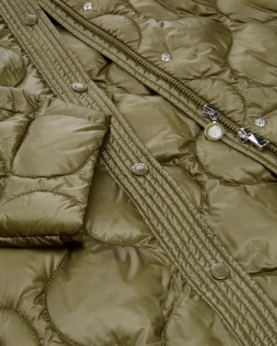 Lombi Daunenparka für Damen von Moncler in Oliv. Denkt man an hochwertige, warmeDaunenjacken, kommt einem unweigerlich das italienische Traditionslabel Monclerin den Sinn. Auch mit diesem Modell präsentiert das Label dank der hochwertigenDaunen-Feder-Füllung einen optimalen Begleiter für vielseitige Winter-Looks,welcher durch das voluminöse Steppmuster in Rautenform und die labeltypischeLogo-Applikation in Szene gesetzt wird.