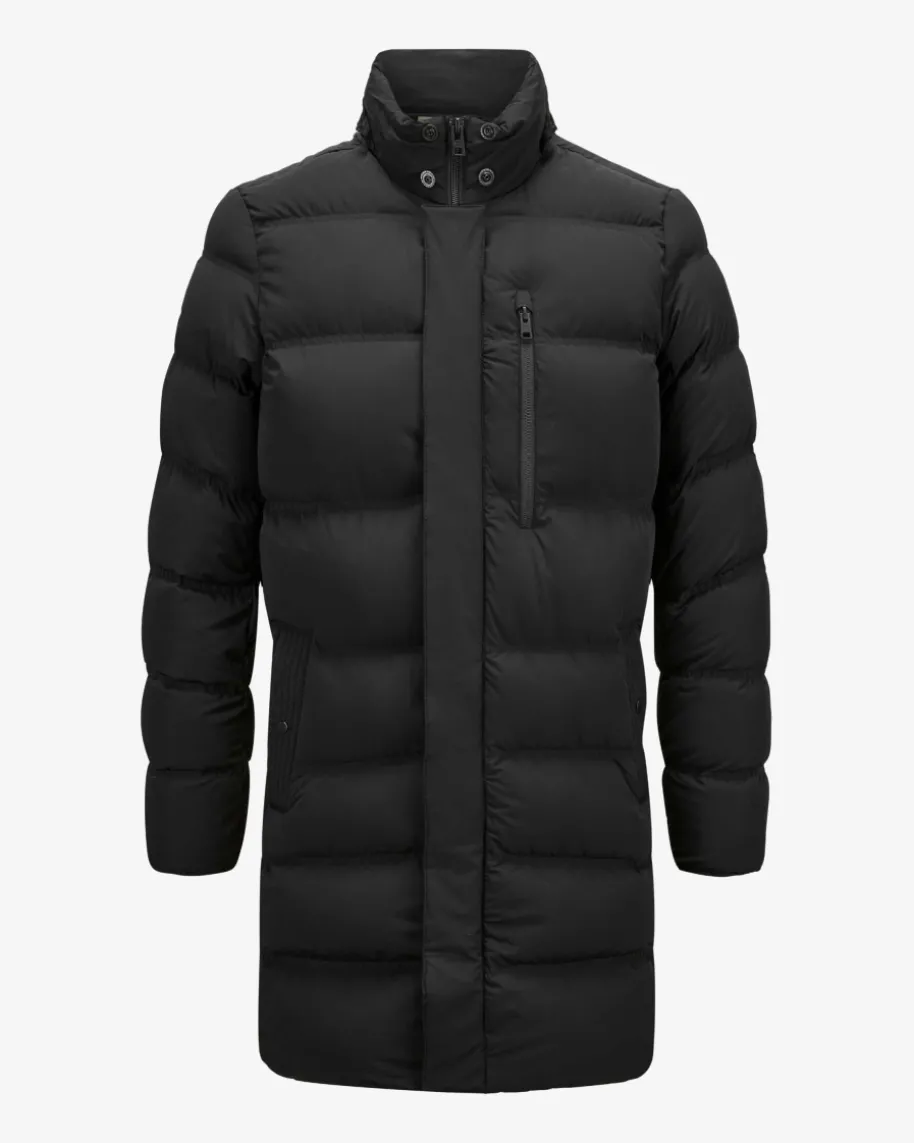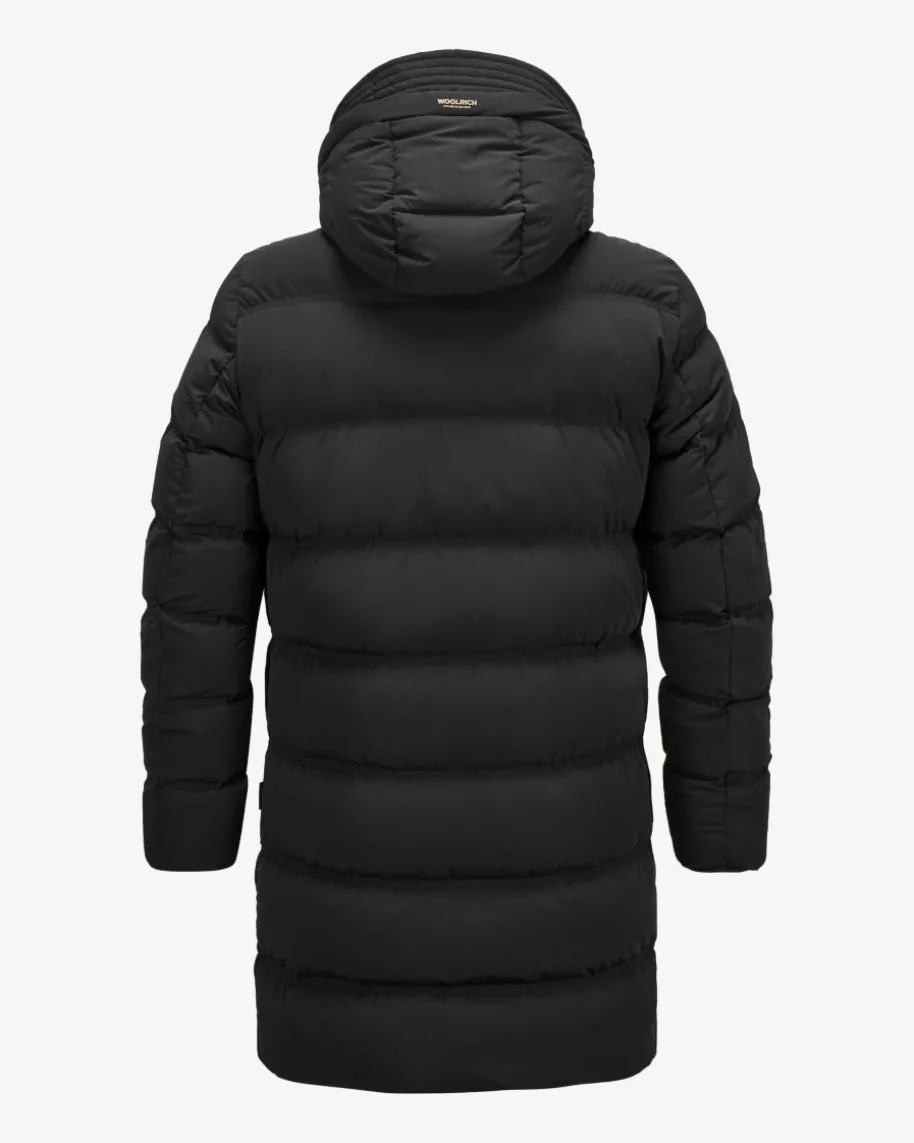 Long Puffer Daunenjacke für Herren von Woolrich in Schwarz. 1830 von John RichinPennsylvania gegründet, erfreute sich das Label damals schon großer Beliebtheit– vor allem im Outdoor-Bereich. Auch dieses Modell überzeugt mit leichterDaunen-Feder-Füllung, die eine optimale Wärmeisolation verspricht, während dasgesteppte Design in matter Optik eine edle Note verleiht. Das Minimale Gewichtund die sportive Aufmachung kreieren einen zeitlosen maskulinen Begleiter.