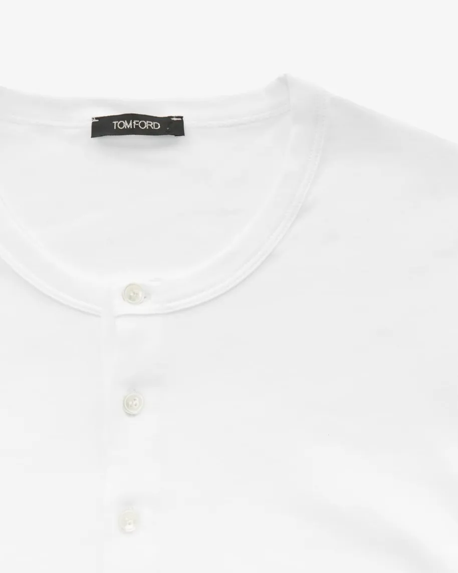Longsleeve für Herren von Tom Ford in Weiß. Das Modell überzeugt mit softerBaumwoll-Qualität, die für einen hohen Tragekomfort sorgt, während das cleaneLounge-Design durch die Henley-Aufmachung stilvoll vollendet wird.