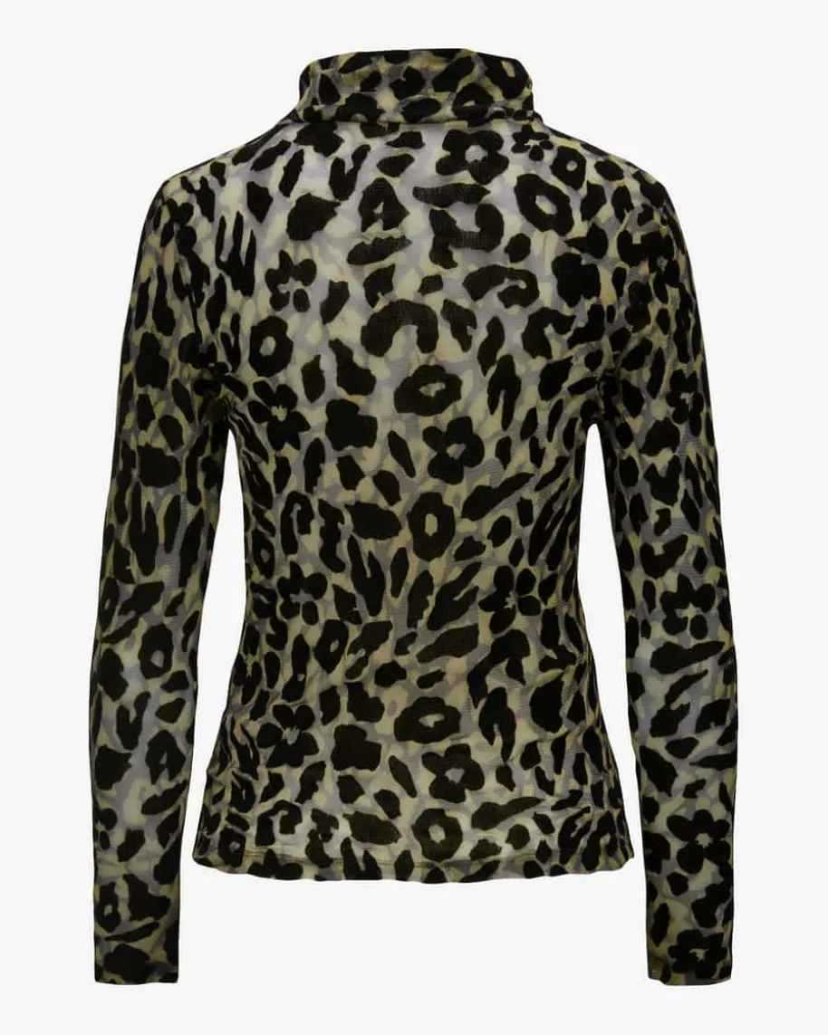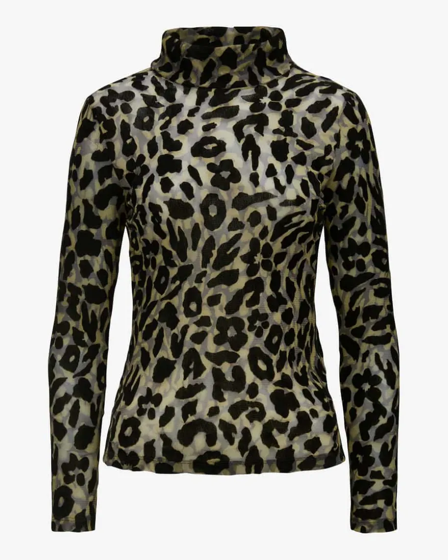 Longsleeve für Damen von Marc Cain in Oliv und Schwarz. Marc Cain verbindetÄsthetik und Kunst mit Lässigkeit und Natürlichkeit. Innovative Schnitte undeine farbenfrohe Palette prägen das deutsche Label. Auch dieses Modell überzeugtmit leichtem Mesh-Material in semi-transparenter Optik und raffiniertem Leo-Print, während die schmale Silhouette mit Stehkragen einen modischen Stilschafft.
