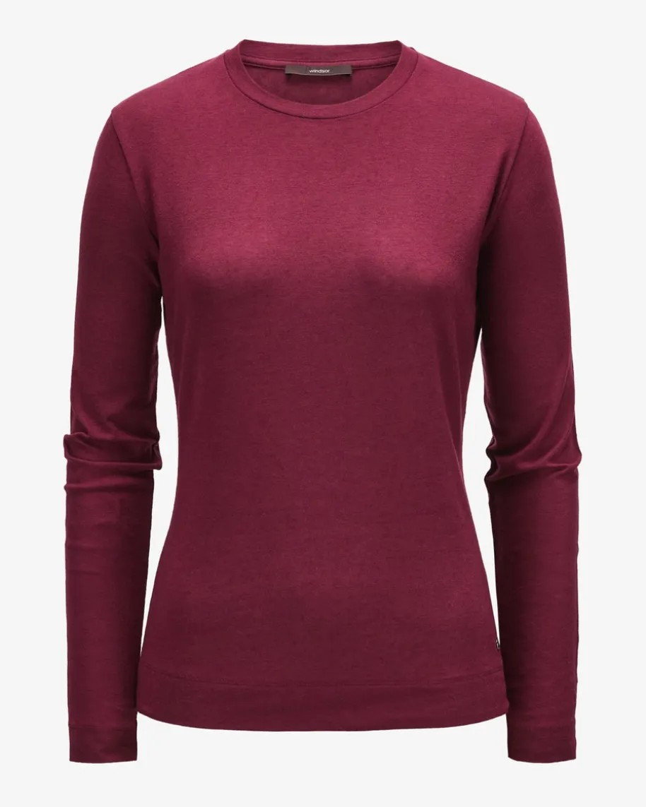 Longsleeve für Damen von Windsor in Bordeaux. Das tailliert geschnittene Modellavanciert dank dem soften und elastischen Lyocell-Woll-Mix zu einem leichten undkombistarken Basic, welches viele Layering-Optionen für Sie bereithält.