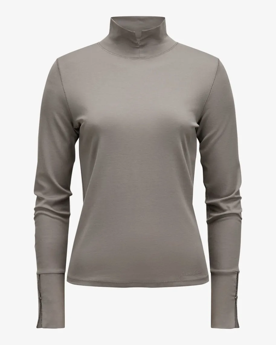 Longsleeve für Damen von Marc Cain in Dunkelgrau. Das legere Modell punktet mithohem Tragekomfort dank der elastischen Baumwoll-Qualität, während dieoriginellen Manschetten mit Schmuckstein-Applikation eine feminine Noteverleihen.