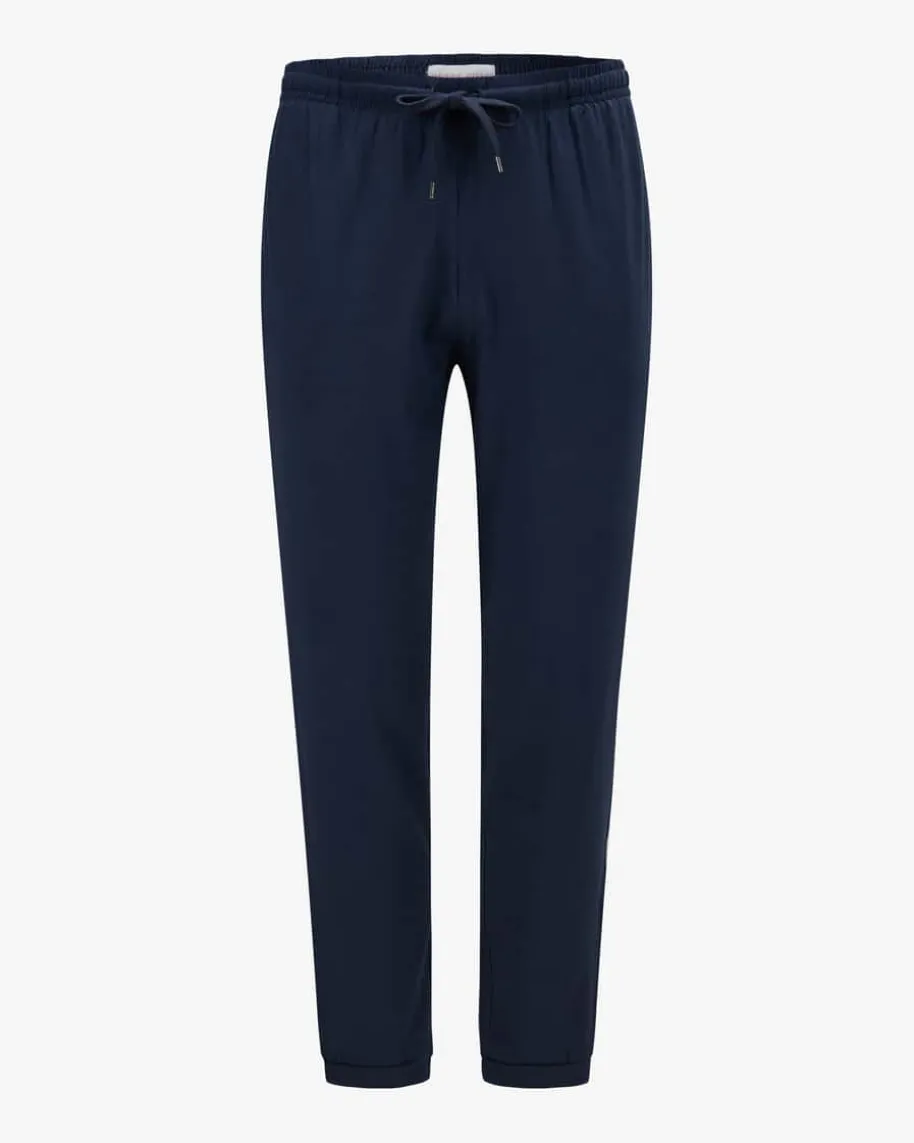 Loungehose für Herren von Derek Rose in Navy. Das Modell besticht durch dieleichte, elastische Jersey-Qualität und die puristische Aufmachung, während dielegere Passform sowie der elastische Bund für hohen Tragekomfort und einenperfekten Sitz sorgen. Zwei Reißverschluss-Taschen als auch das dezente Logo-Detail runden den Loungewear-Favoriten harmonisch ab.