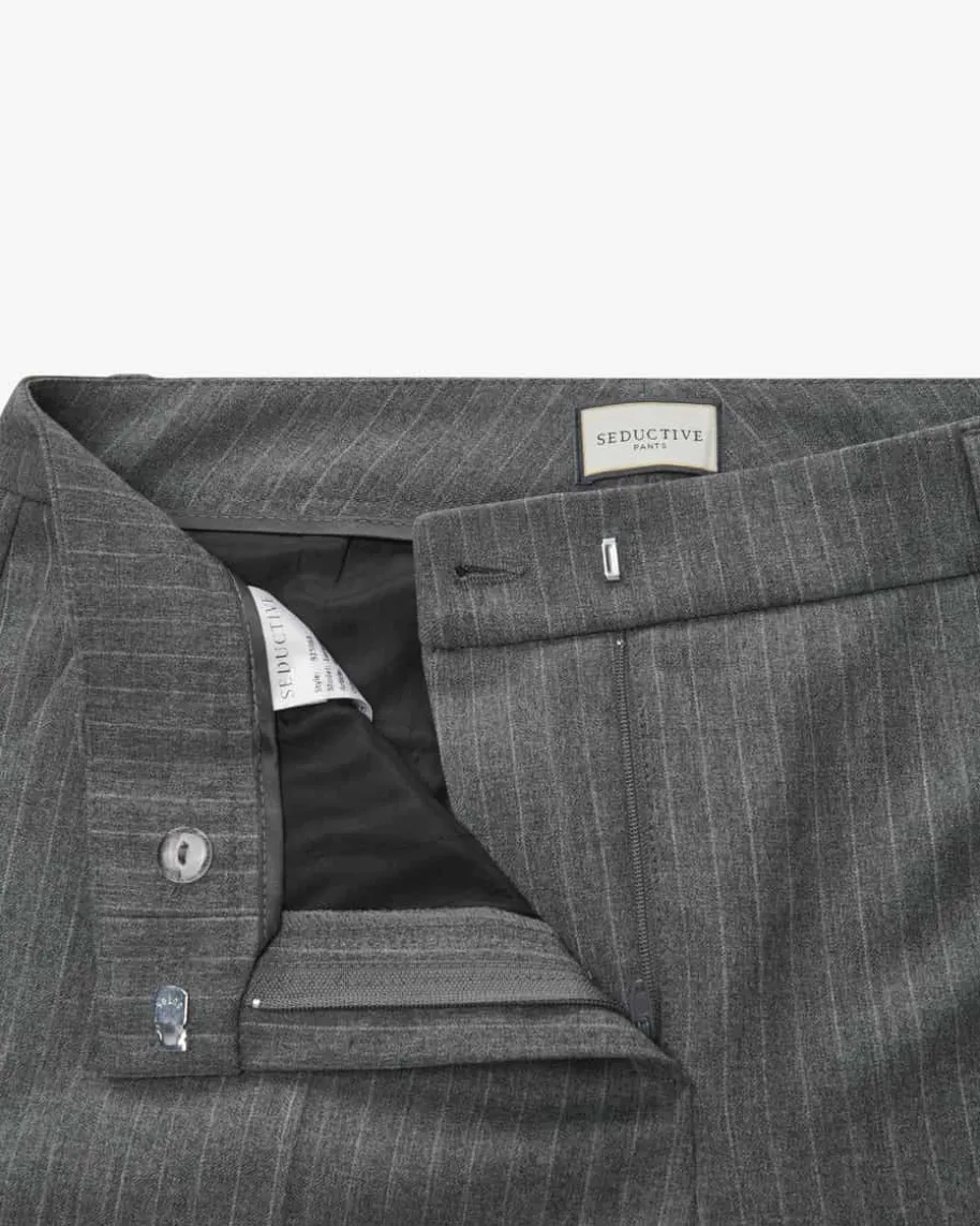 Lucasse Hose für Damen von Seductive in Grau. Perfekte Passform, edle Farben undweiche italienische Stoffe machen die Hosen des Labels zu stilvollenAlltagsbegleitern – ob im Office, auf Reisen oder abends. Auch dieses Modell auselastischem Material-Mix präsentiert sich mit stilvollen Nadelstreifen undavanciert zum perfekten Begleiter für elegante Business-Outfits.