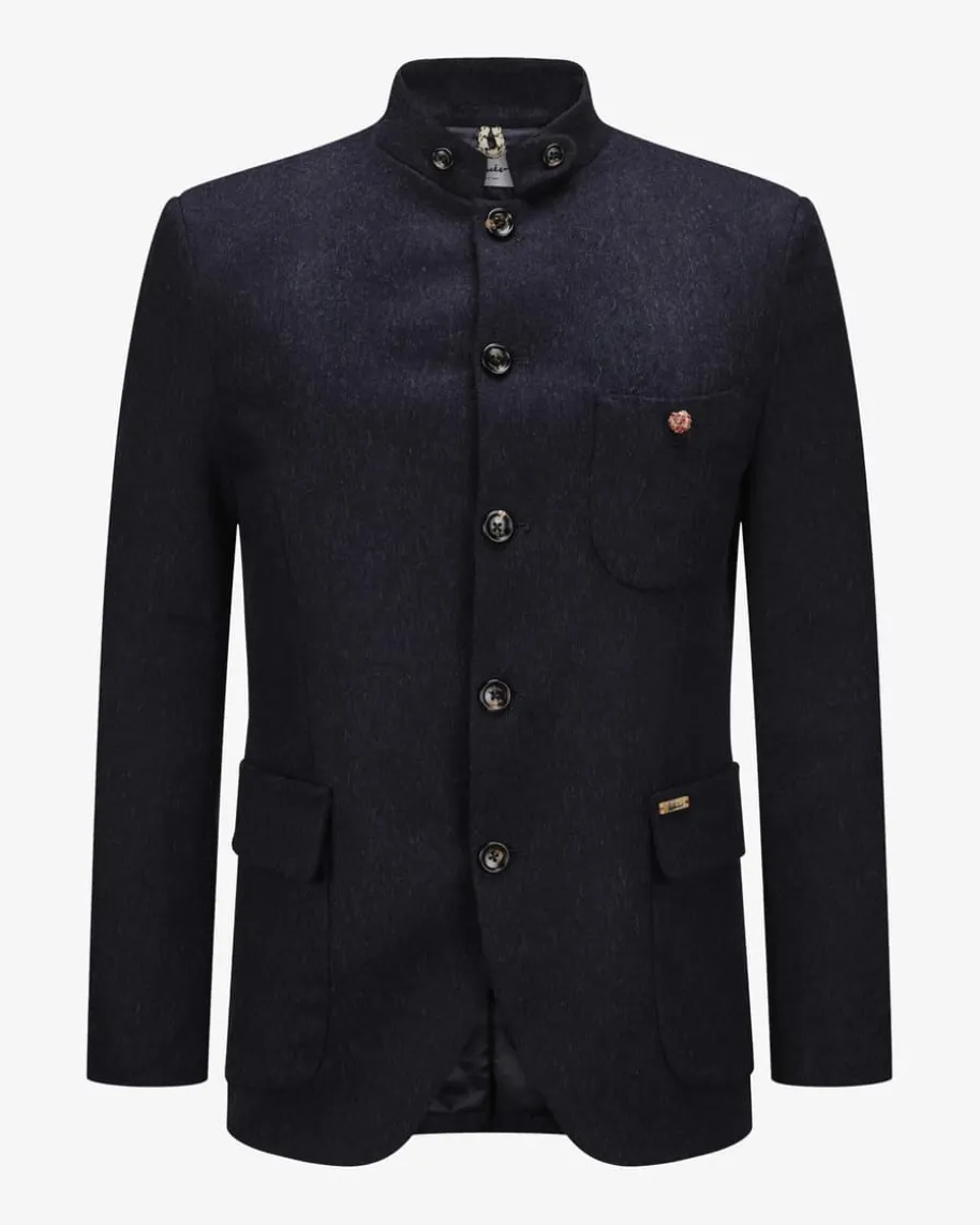 Lusandro Trachtenjanker für Herren von Luis Trenker in Dunkelblau. Tracht neuinterpretiert – Dieses Modell aus melierter Schurwoll-Qualität überzeugt dankder cleanen Aufmachung als vielseitiger Casual-und Trachten-Begleiter. Zugleichsetzen stilvolle Logo-Details besondere Akzente.