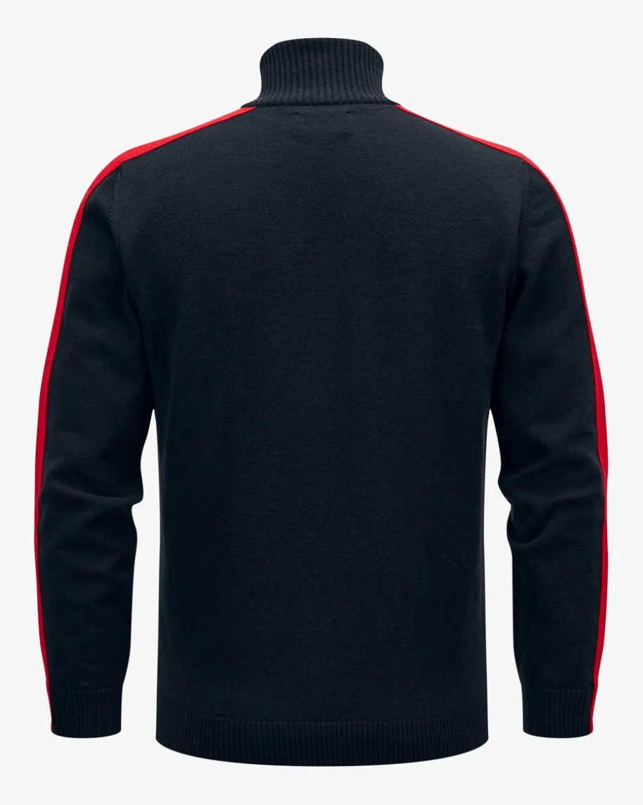 Luwilhelm Pullover für Herren von Luis Trenker in Dunkelblau, Rot und Ecru. Dankangenehmer Strick-Qualität in hochwertigem Woll-Mix überzeugt das Modell alssportiver Begleiter für moderne Trachten-Looks oder als wärmender Alltags-Favorit für eine abwechslungsreiche, maskuline Garderobe.