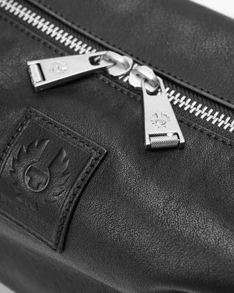 Maclagan Kulturtasche für Herren von Belstaff in Schwarz. Ein edler Begleiterauf Reisen oder für Zuhause – Die Tasche präsentiert sich dank hochwertigerLeder-Qualität in stilvoller Aufmachung, während das geräumige Innenfach Platzfür all Ihre Kosmetikartikel bietet.
