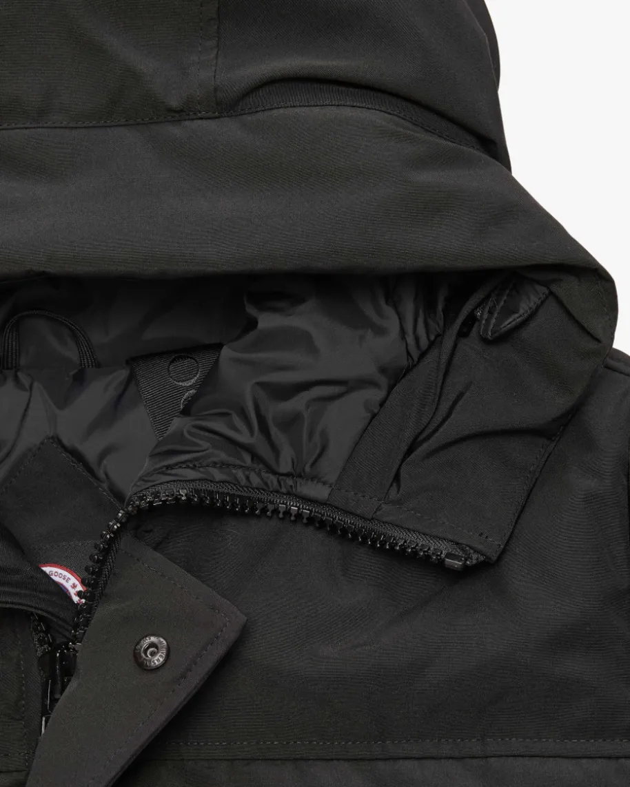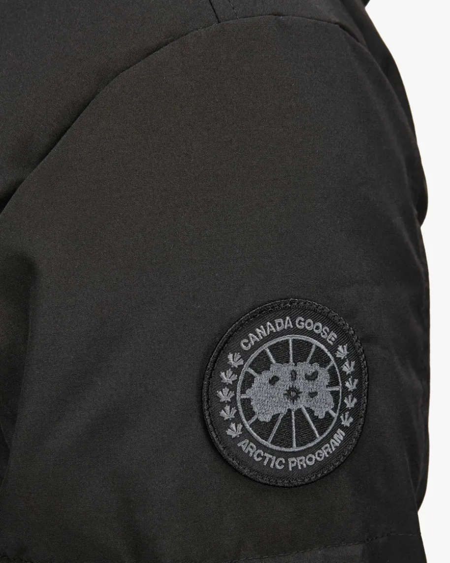 MacMillan Daunenjacke für Herren von Canada Goose in Schwarz. ZweckmäßigesDesign, orientiert an den rauen Bedingungen der Arktis, ist der Grundstein füralle Kollektionen von Canada Goose. Dieses legere Modell überzeugt dank matterSteppung in angesagter Parka-Optik, während die hochwertige Daunen-Feder-Füllungoptimalen Schutz vor Kälte verspricht. Zugleich ergänzen der hochgeschlosseneKapuzenkragen sowie die innenliegenden Schulterriemen die Winterjackefunktional.
