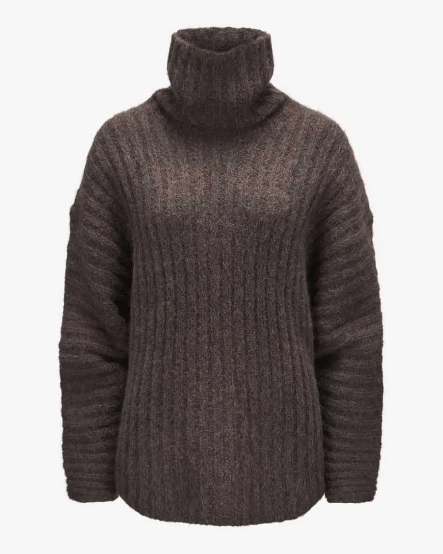 Mag Rollkragenpullover für Damen von By Malene Birger in Braun. Gefertigt aushochwertigem Mohair-Alpakawoll-Mix besticht das Modell mit einer haarig-weichenHaptik im schweren Strick-Design, während die weite Schnittführung mitFledermausärmeln einen legeren Herbst-/ Winterbegleiter schafft.