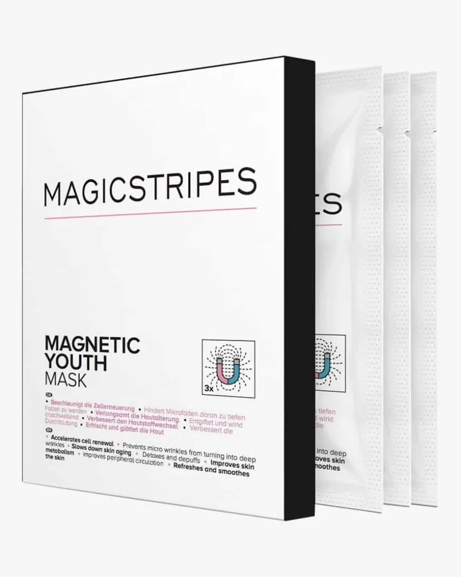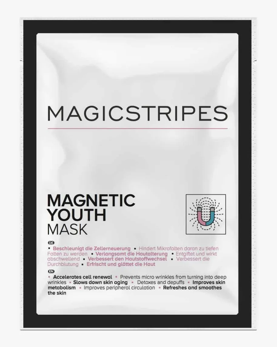 Magnetic Youth Mask für Damen von Magicstripes. Mithilfe von Magneten wird dieBlut- und Flüssigkeitszirkulation auf der Haut beschleunigt und unterstützt dieAusscheidung von Giftstoffen und Unreinheiten. Zudem steigert die Maske dieHerstellung von roten Blutkörperchen und beschleunigen den Hautstoffwechsel.