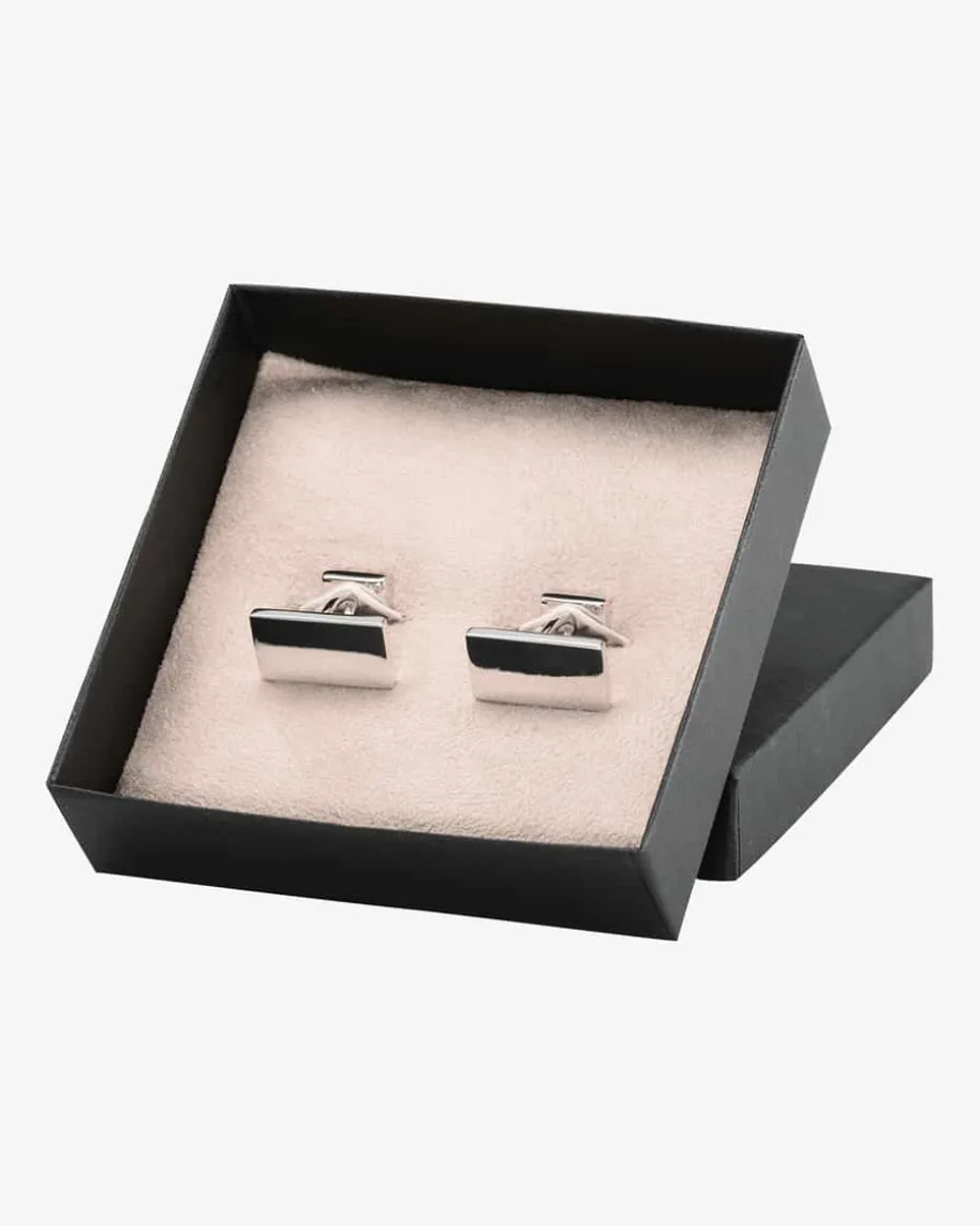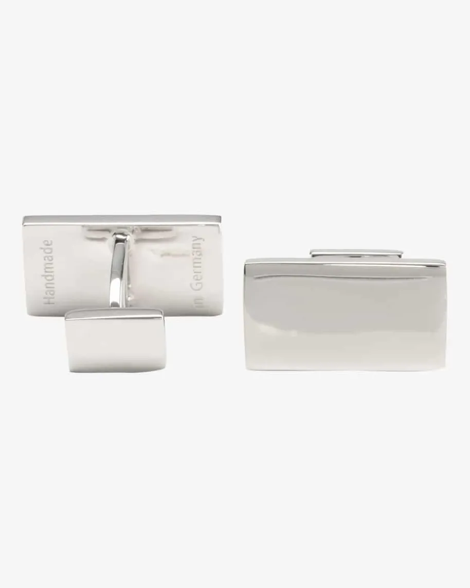 Manschettenknöpfe für Herren von Deumer in Silber. Klassisch und elegant präsentieren sich die in Deutschland handgefertigten Manschettenknöpfe in rechteckiger Form. Das hochwertige Silber ist glänzend poliert, während sich eine Logoprägung auf dem Stift befindet. Für eine schöne Präsentation wird das Modell in einem stilvollen Geschenketui geliefert.
