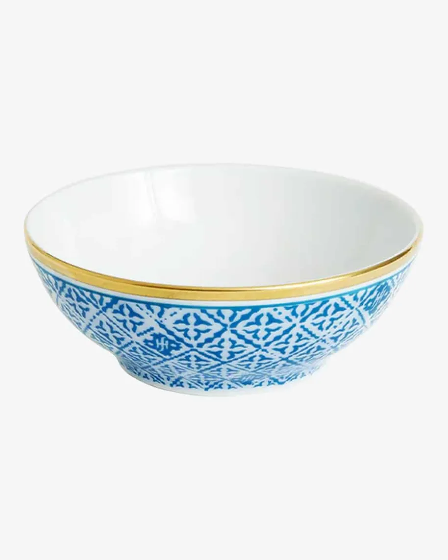 Manu Schale von Friendly Hunting in Royal, Weiß und Gold. Diese Schüssel mitEyes of Marrakesh Print ist die perfekte Ergänzung für Ihr Geschirr-Set und eineHommage an die typischen orientalischen Ornamente der Wüstenmetropole Marrakesh.