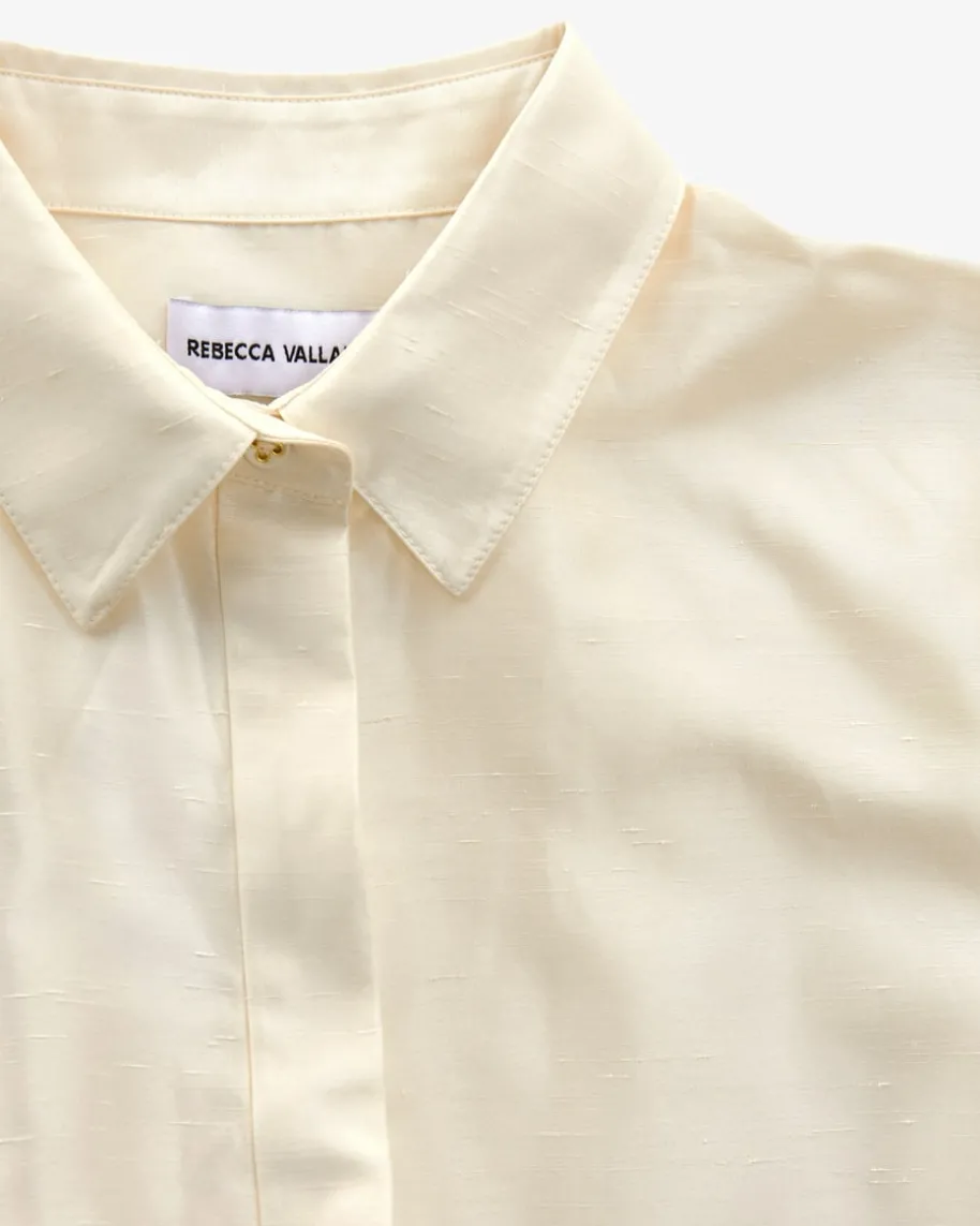 Maple Hemdblusenkleid für Damen von Rebecca Vallance in Creme. Das Modellbegeistert mit changierender Taft-Qualität und raffinierten Falten-Details,während die taillierte Schnittführung mit ausgestelltem Rock und voluminösen,gerafften Ärmeln eine besondere Blusenkleid-Silhouette mit Romance-Flairschafft.