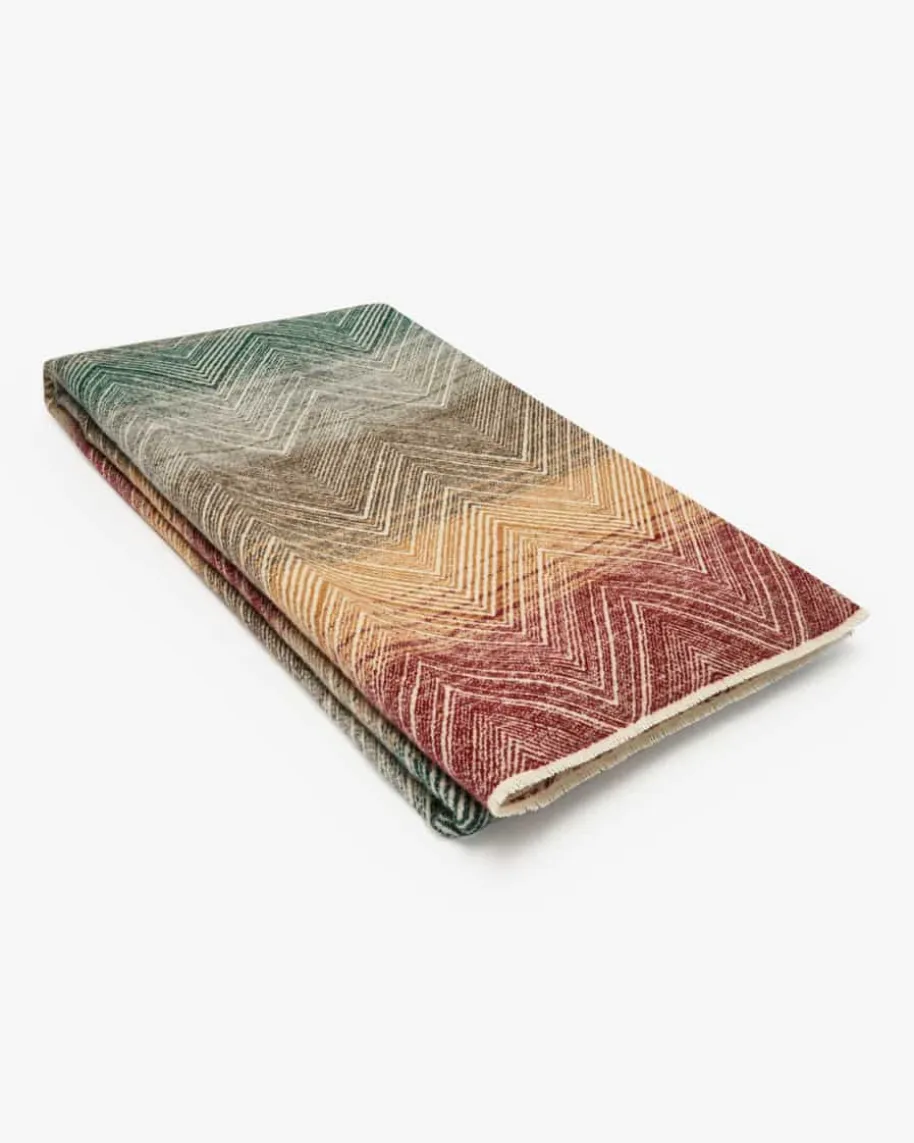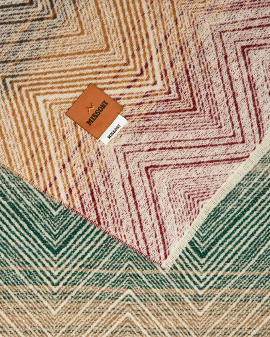 Marea Wolldecke von Missoni Home in Terrakotta, Lachs und Taupe. Der hochwertigeWoll-Cashmere-Mix verleiht einen weichen und angenehmen Griff, während dasikonische Zickzack-Muster sowie feine Fransen-Details ein stilsicheresAccessoire für Ihr Zuhause kreieren.